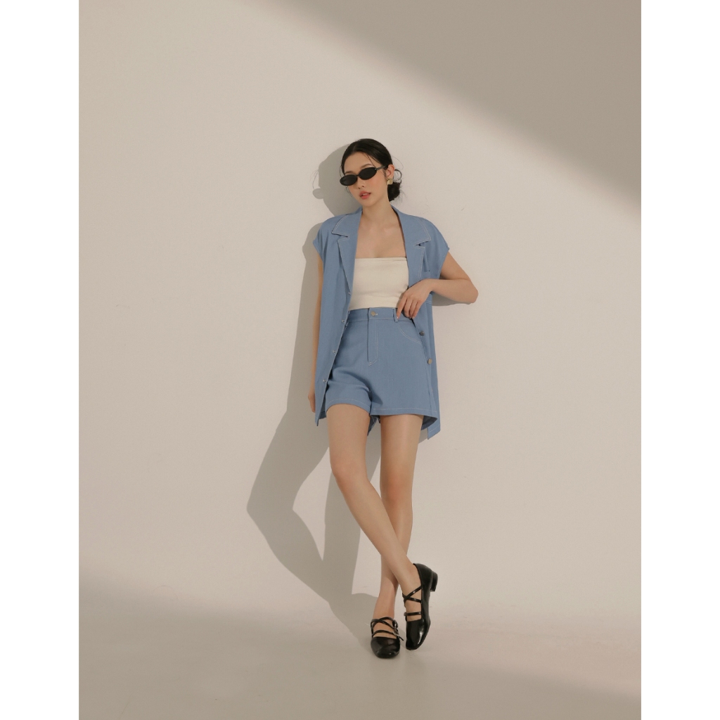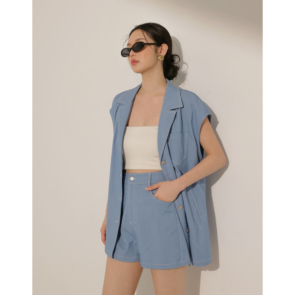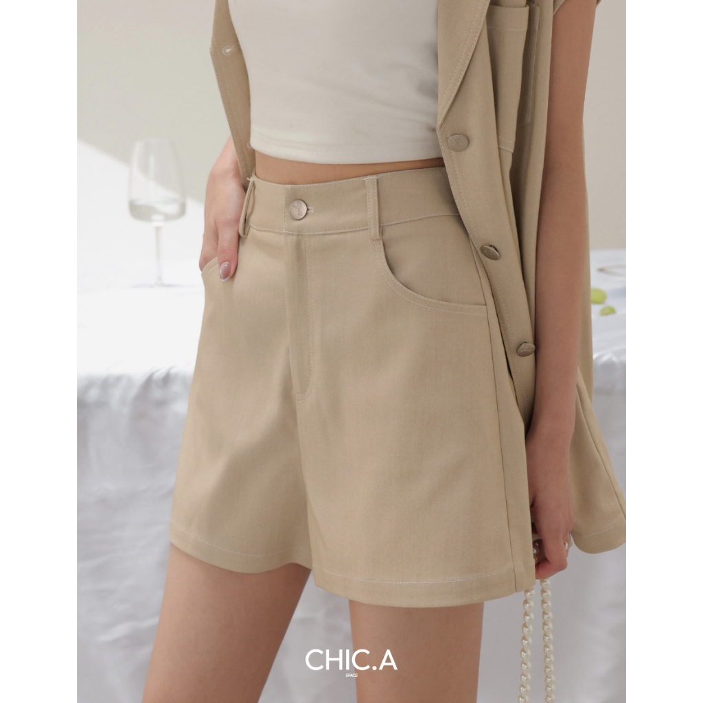 CHIC A SPACE 簡約斜紋牛仔短褲(卡其/淺藍) 女裝 現貨卡其,S|卡其,M|卡其,L|淺藍,S|淺藍,M|淺藍,LShortsAIR SPACE