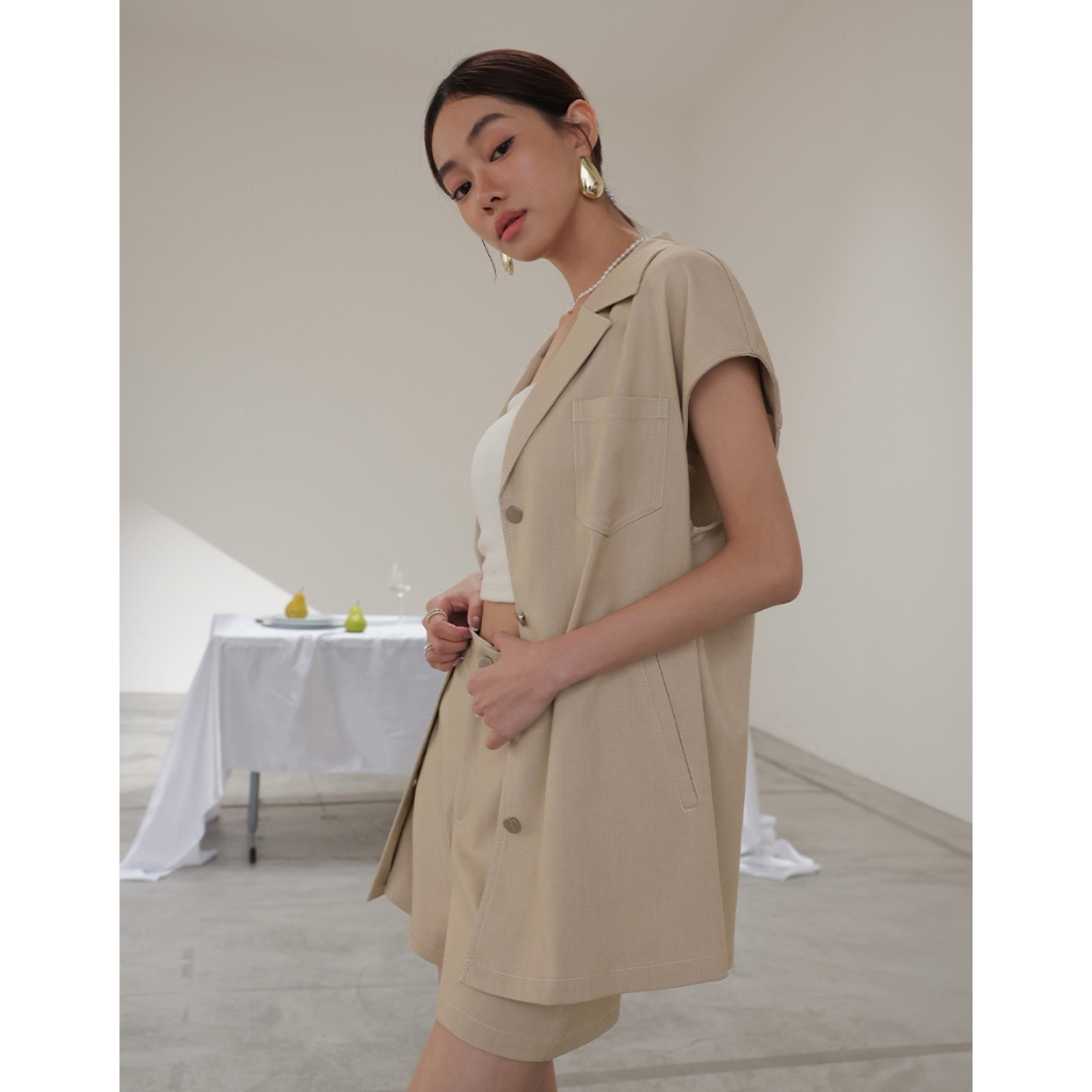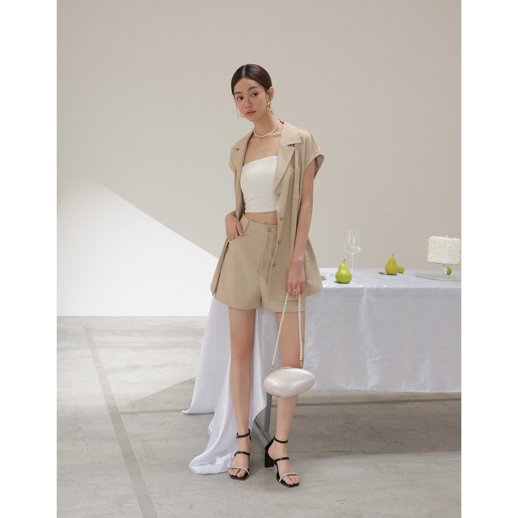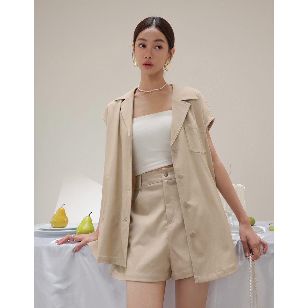 CHIC A SPACE 簡約斜紋牛仔短褲(卡其/淺藍) 女裝 現貨卡其,S|卡其,M|卡其,L|淺藍,S|淺藍,M|淺藍,LShortsAIR SPACE