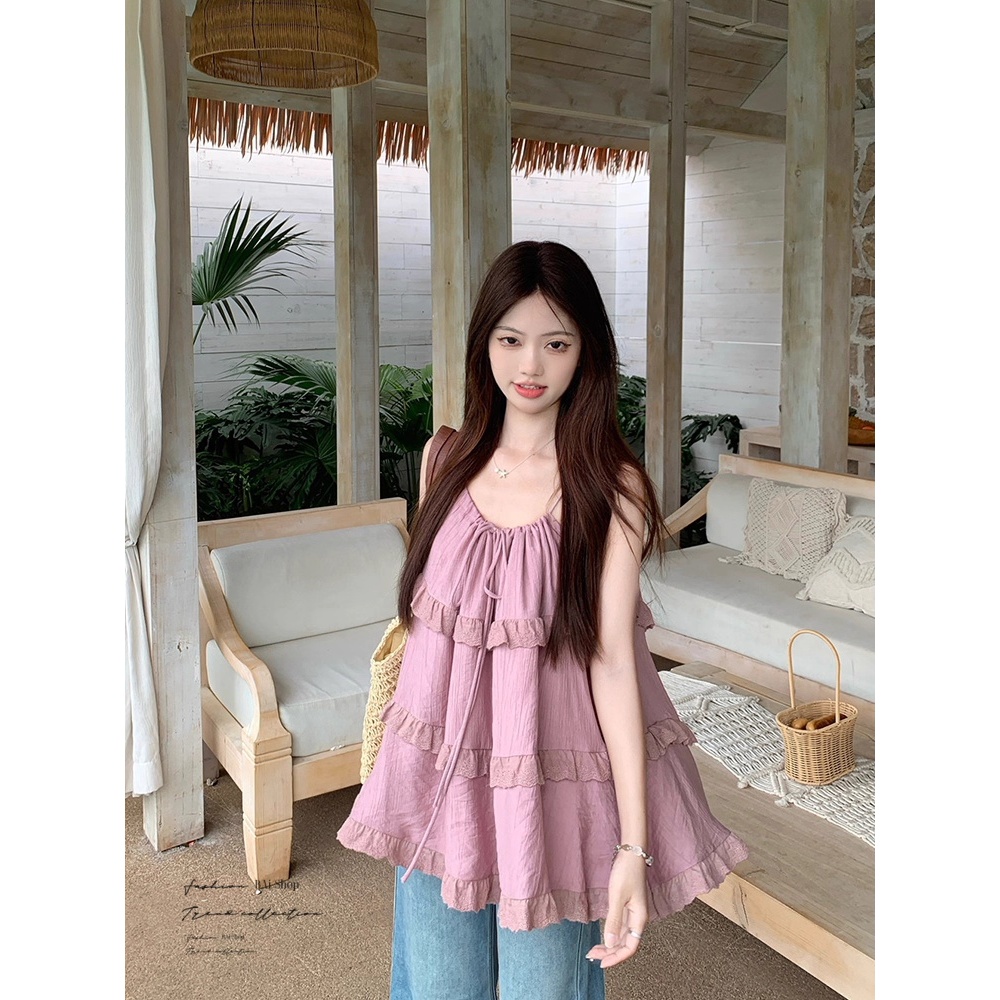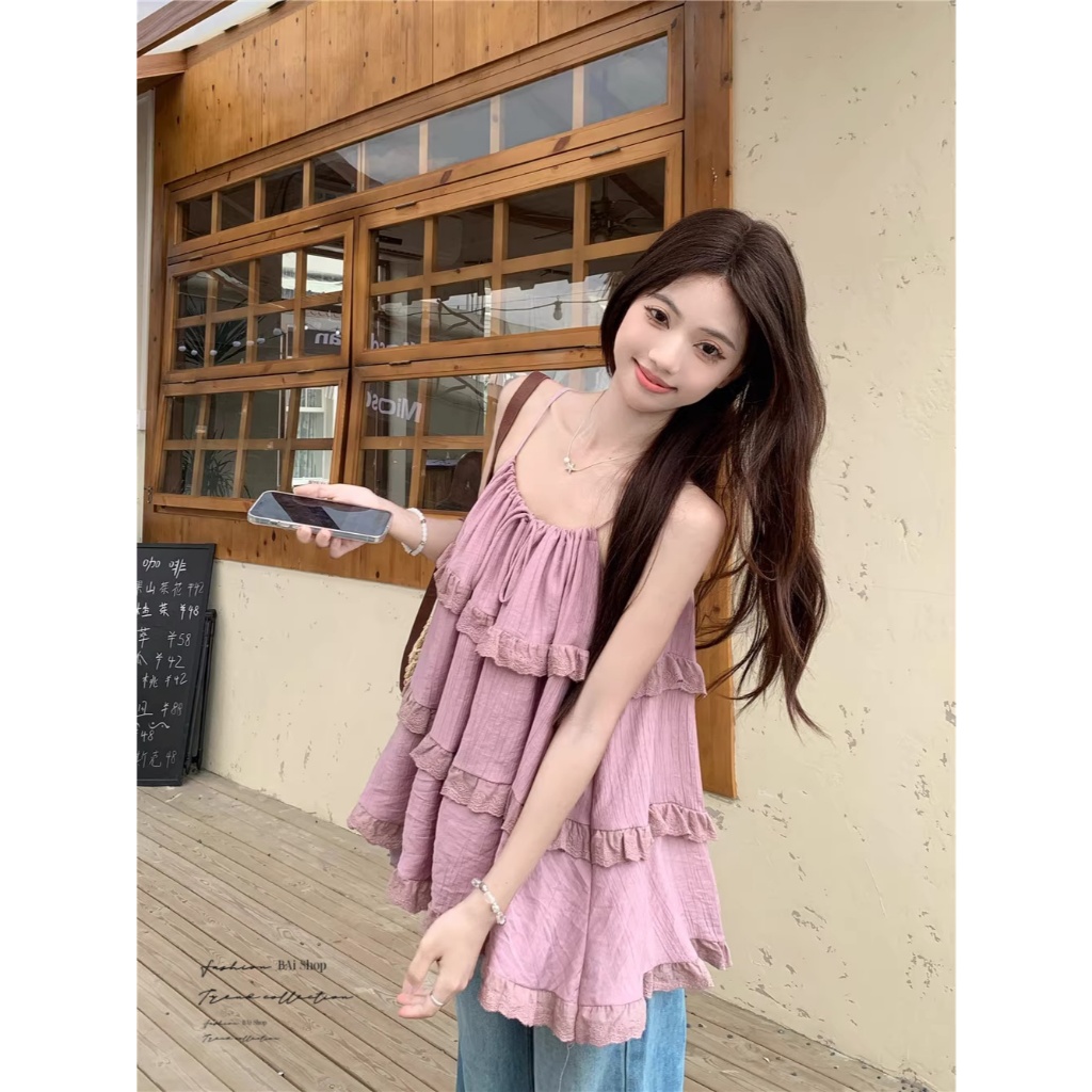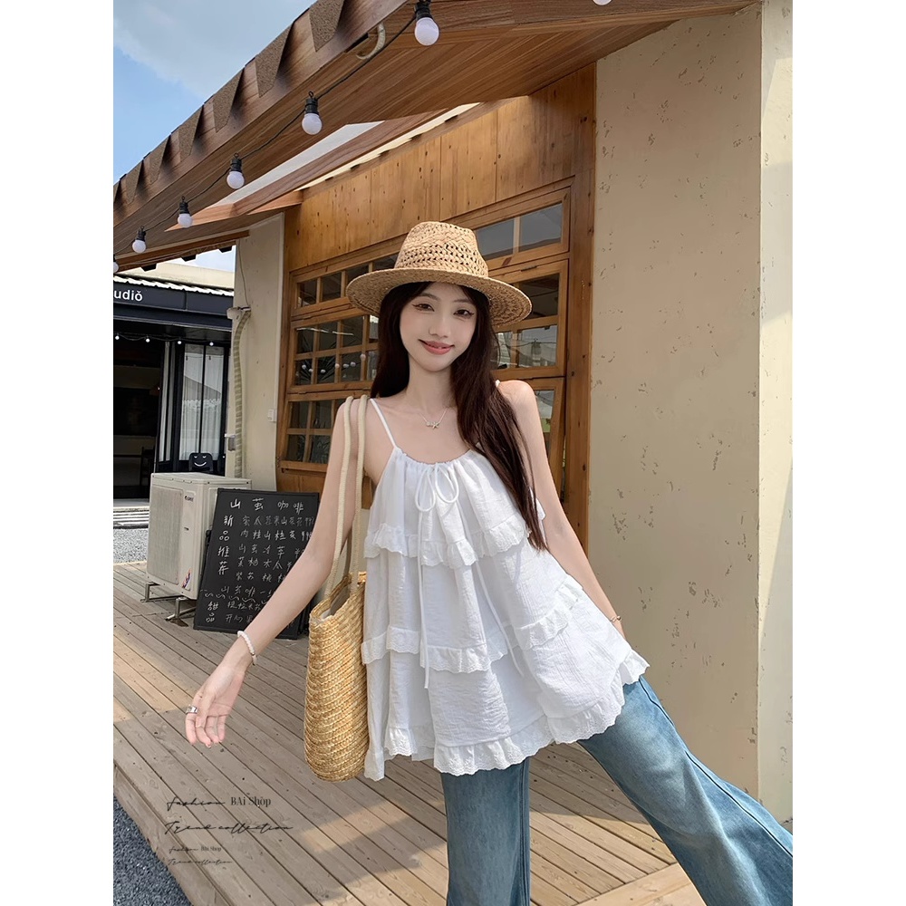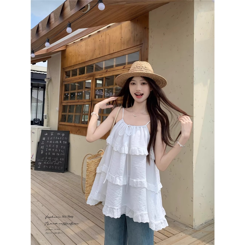 BAi白媽媽 蛋糕蕾絲背心/海邊沙灘度假吊帶-台灣現貨 隔日到貨【350428】白(01)|粉(13)Tanks & CamisolesBAi白媽媽 品牌旗艦店