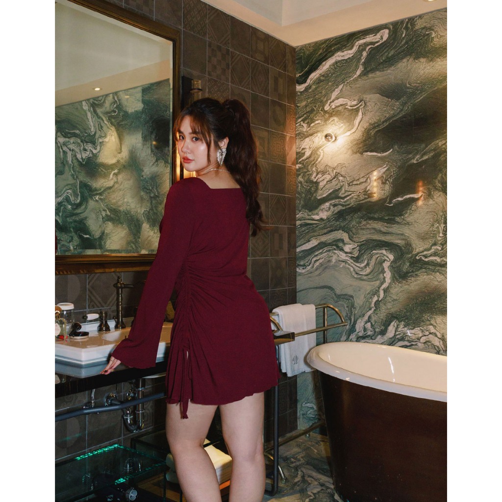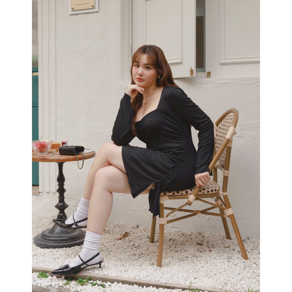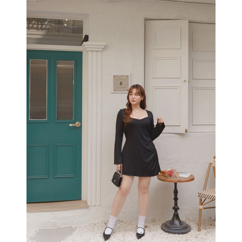 AIR SPACE PLUS 桃心領木耳捲羅紋包臀短洋裝 (黑/酒紅) 女裝 現貨 大尺碼 中大尺碼黑,XL|黑,2XL|黑,3XL|酒紅,XL|酒紅,2XL|酒紅,3XLAIR SPACE