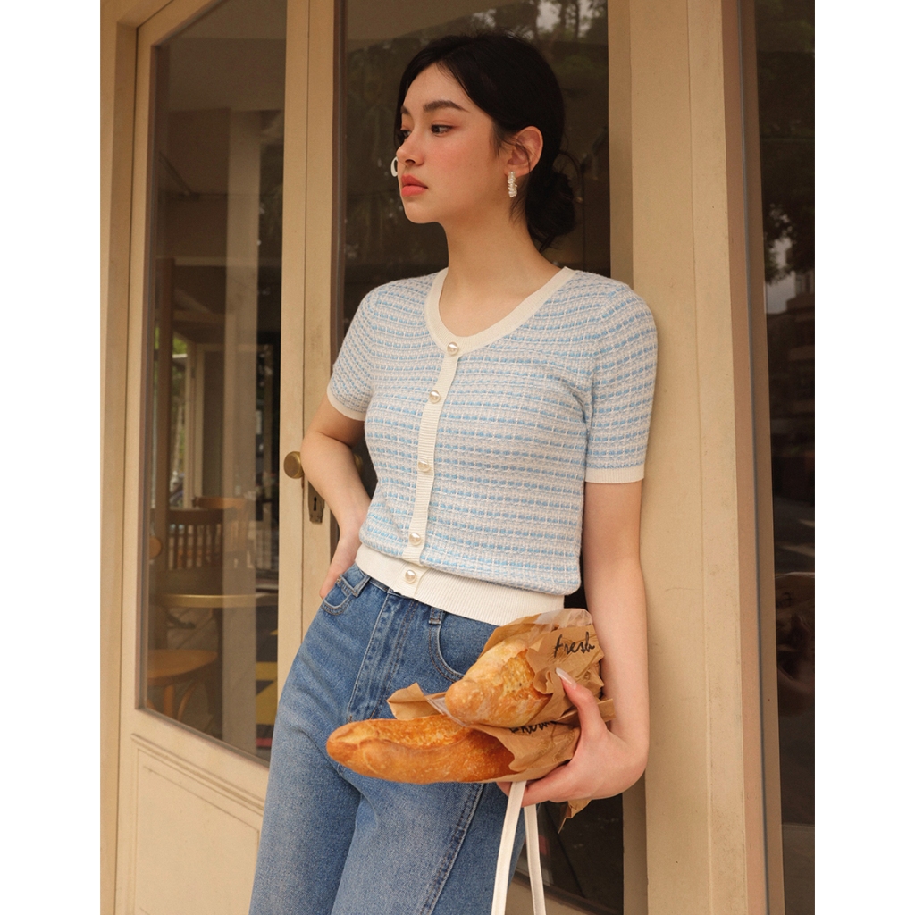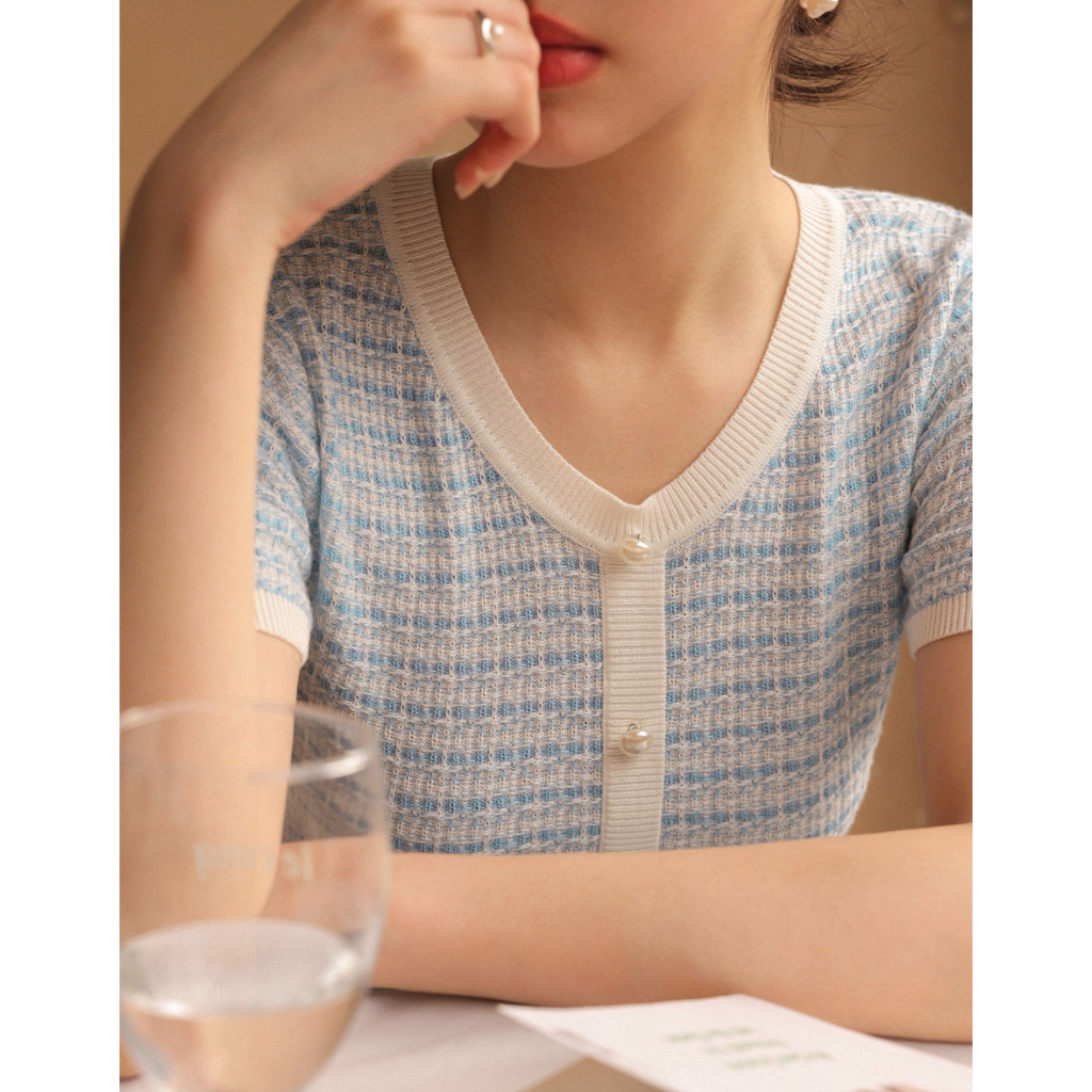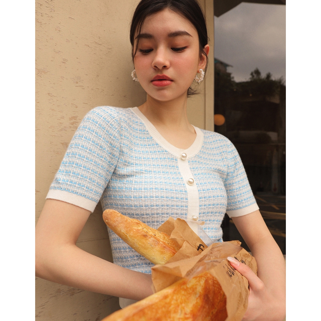 CHIC A SPACE 小香風粉彩配色珍珠排釦針織上衣(藍/粉紅) 女裝 現貨藍,S|藍,M|粉紅,S|粉紅,MAIR SPACE