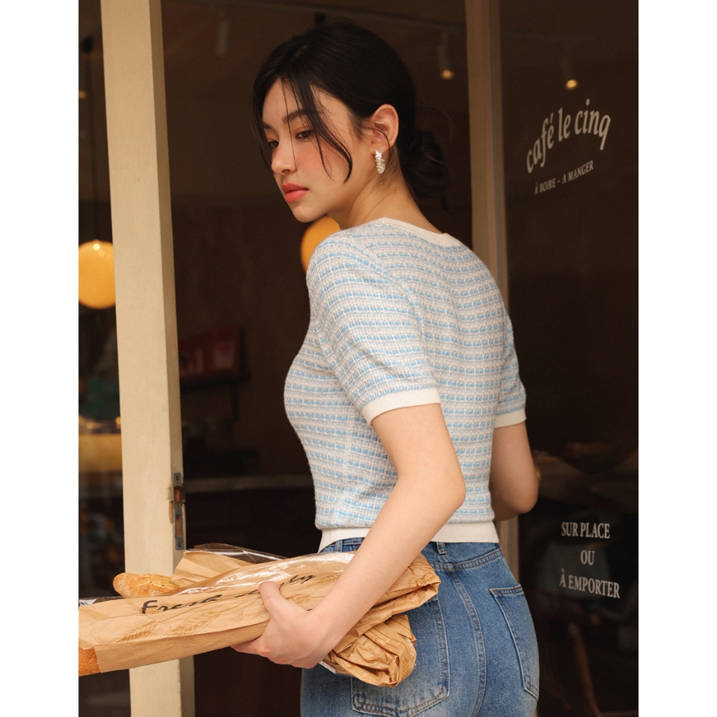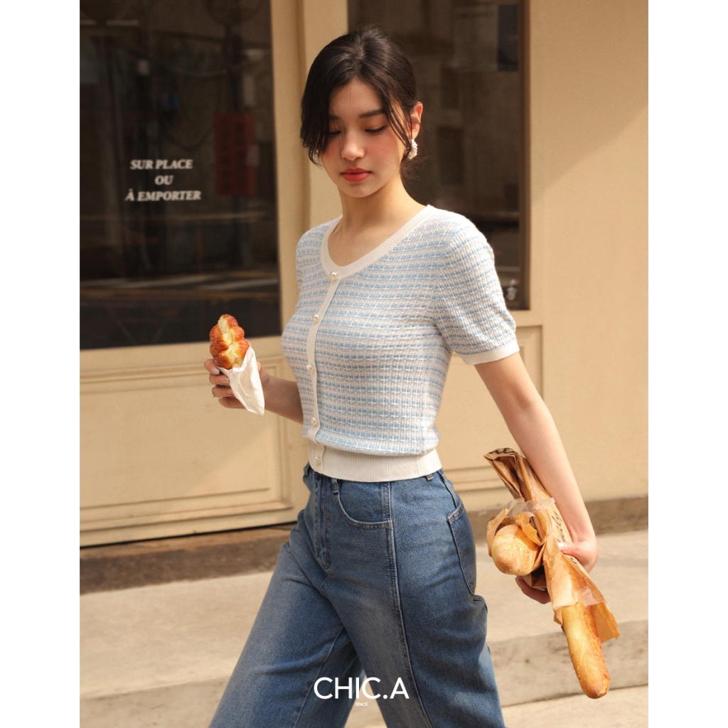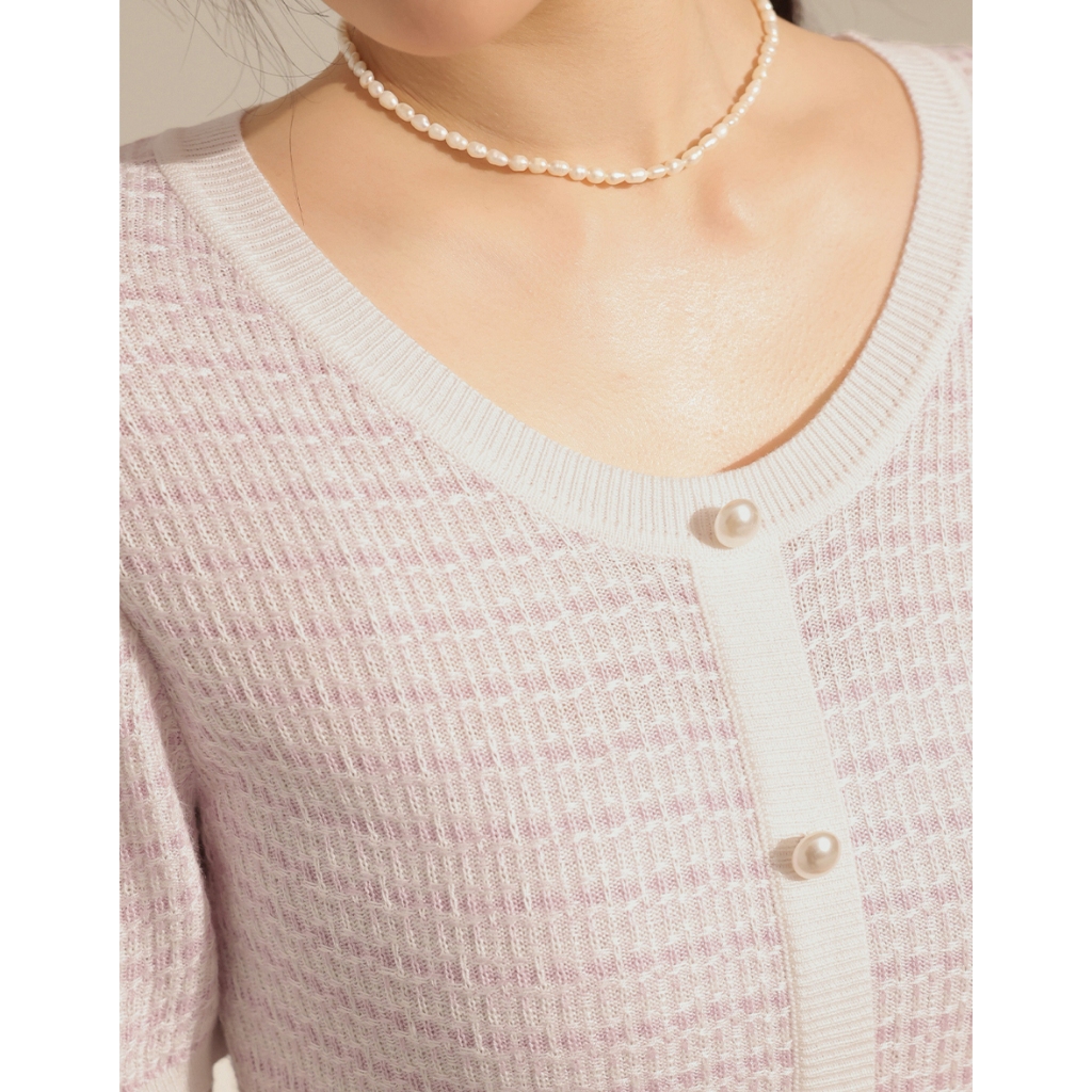 CHIC A SPACE 小香風粉彩配色珍珠排釦針織上衣(藍/粉紅) 女裝 現貨藍,S|藍,M|粉紅,S|粉紅,MAIR SPACE