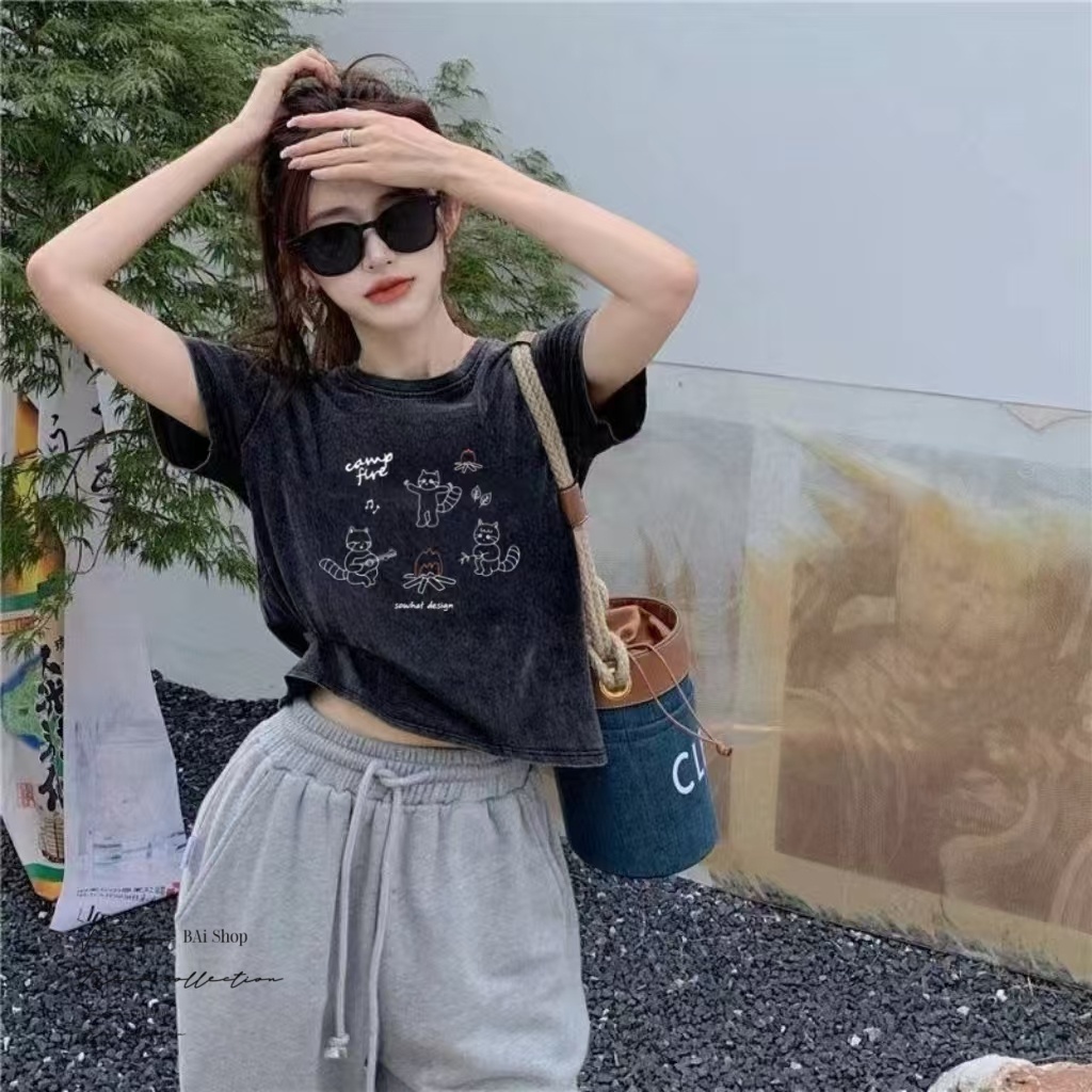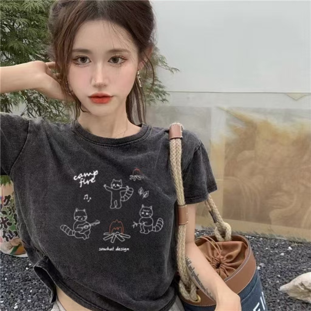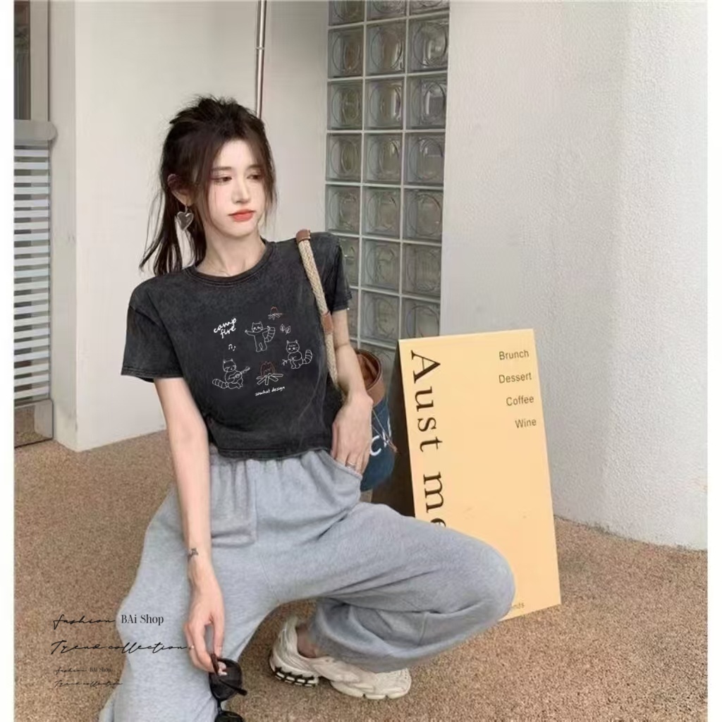BAi白媽媽 印圖水洗牛仔棉T/丹寧短版短袖T恤-台灣現貨 隔日到貨【350365】黑(02)T-shirtsBAi白媽媽 品牌旗艦店