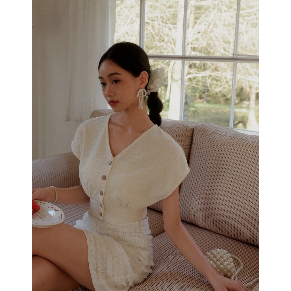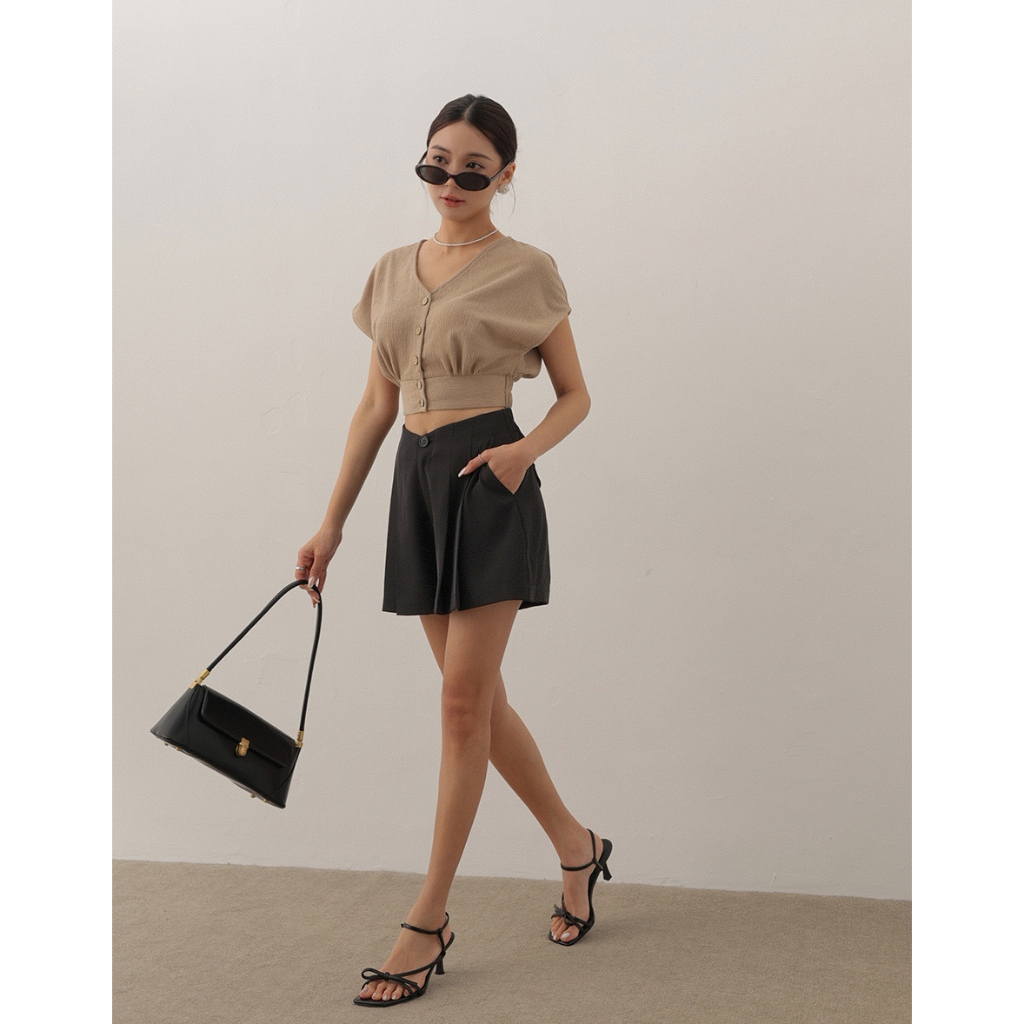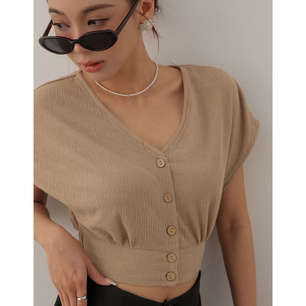 AIR SPACE LADY 質感釦飾收腰V領短袖上衣(杏/卡其) 女裝 現貨杏,S|杏,M|杏,L|卡其,S|卡其,M|卡其,LOthersAIR SPACE