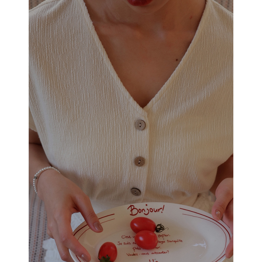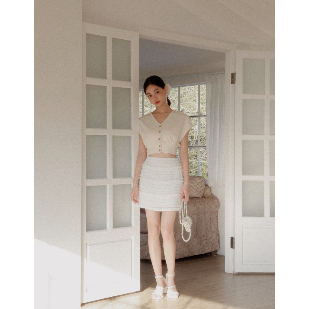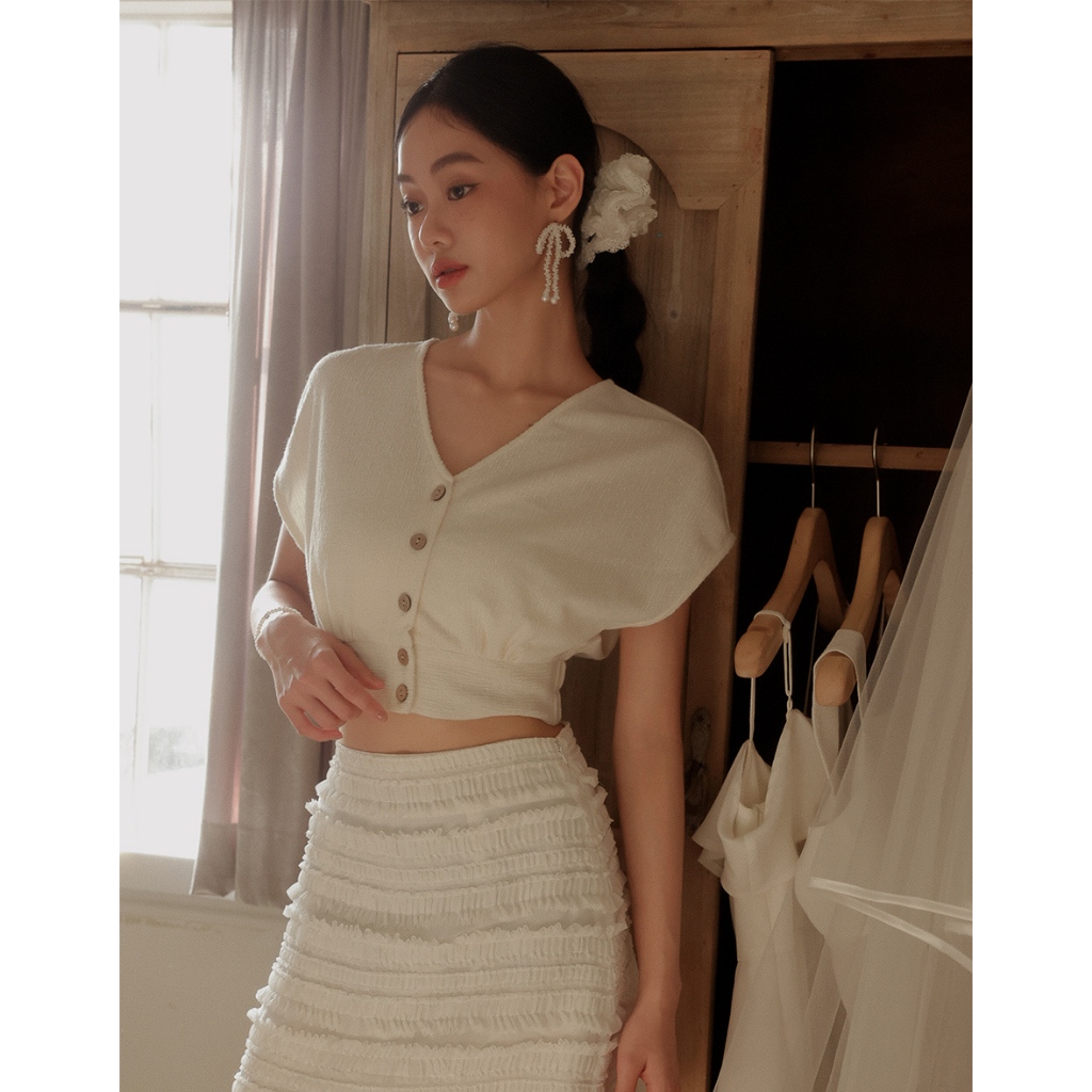 AIR SPACE LADY 質感釦飾收腰V領短袖上衣(杏/卡其) 女裝 現貨杏,S|杏,M|杏,L|卡其,S|卡其,M|卡其,LOthersAIR SPACE