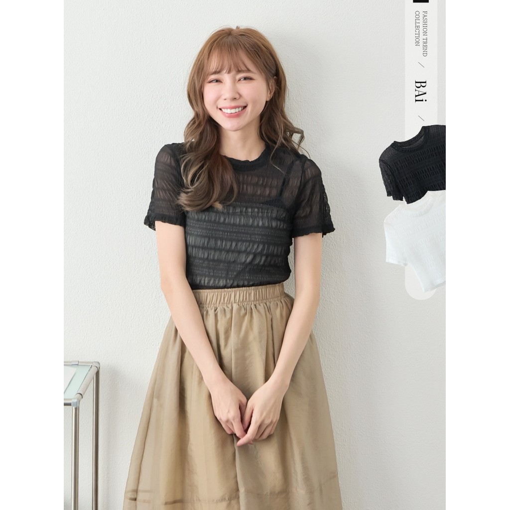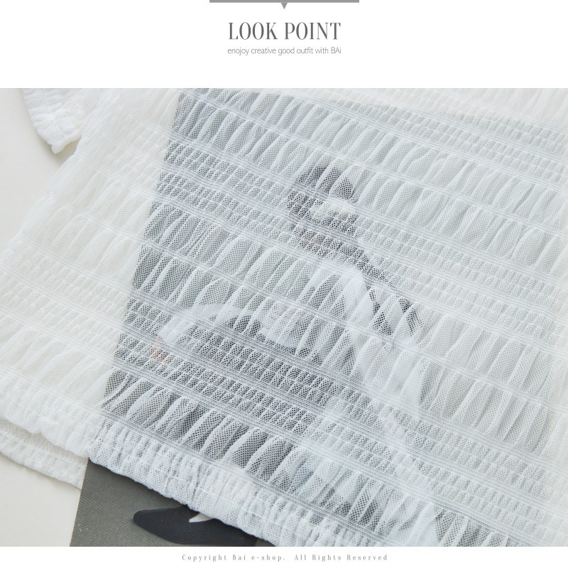 BAi白媽媽 泡泡抓皺透紗衫/透視短袖上衣-台灣現貨 隔日到貨【350314】白_透(01)|黑_透(02)Shirts & BlousesBAi白媽媽 品牌旗艦店