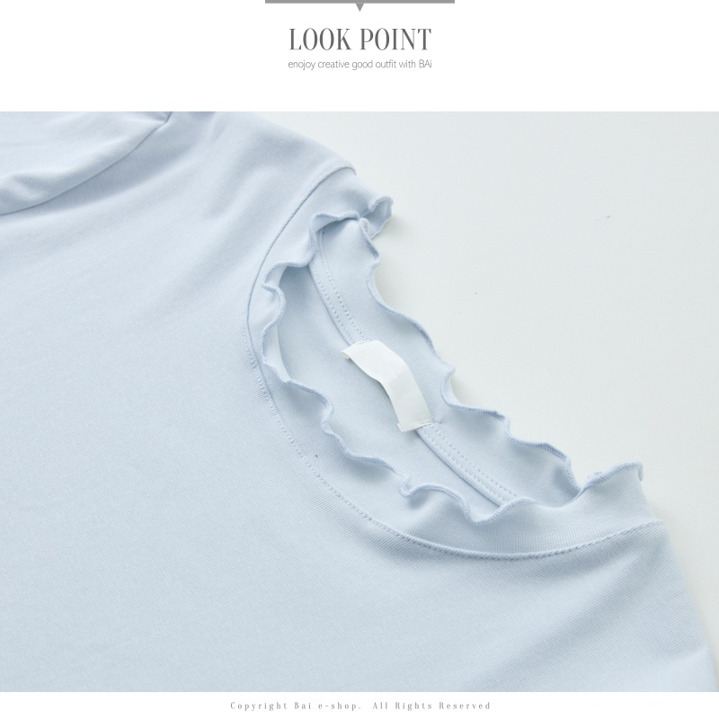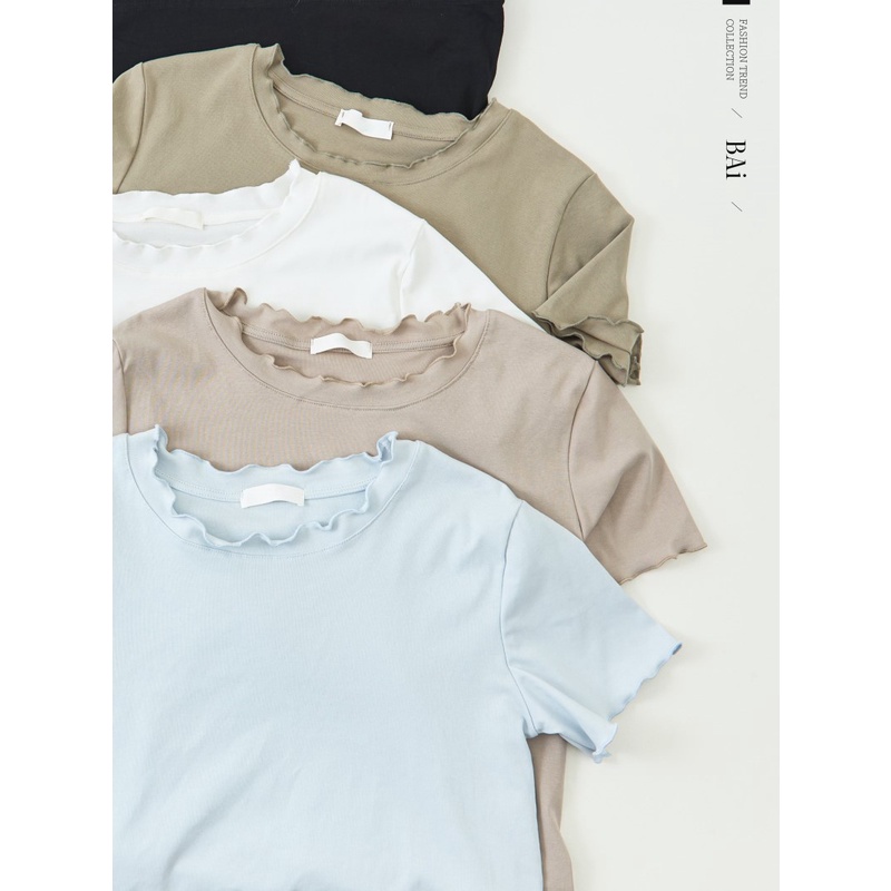 BAi白媽媽 木耳邊寬領T恤/波浪邊大領落肩短袖上衣-台灣現貨 隔日到貨【350265】白_透(01)|黑(02)|藍(05)|綠(06)|奶茶(11)T-shirtsBAi白媽媽 品牌旗艦店