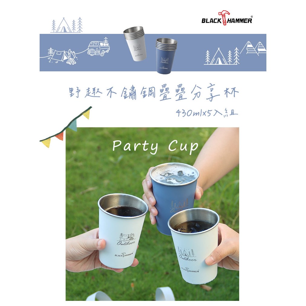 【Black HAMMER 官方直營】野趣不鏽鋼疊疊分享杯五入組430ml藍色|白色Cups, Mugs & GlassesBlack Hammer|美國康寧|掌廚|IdEa LifE餐廚