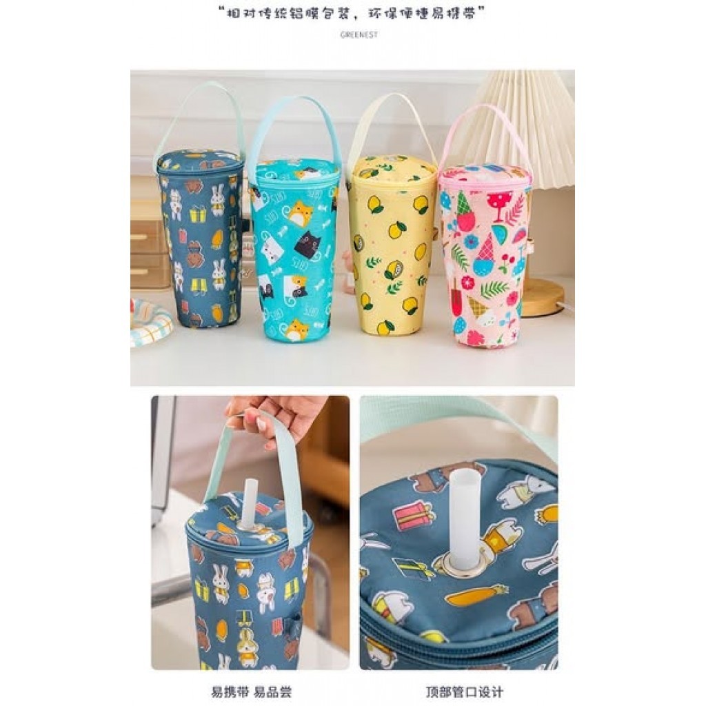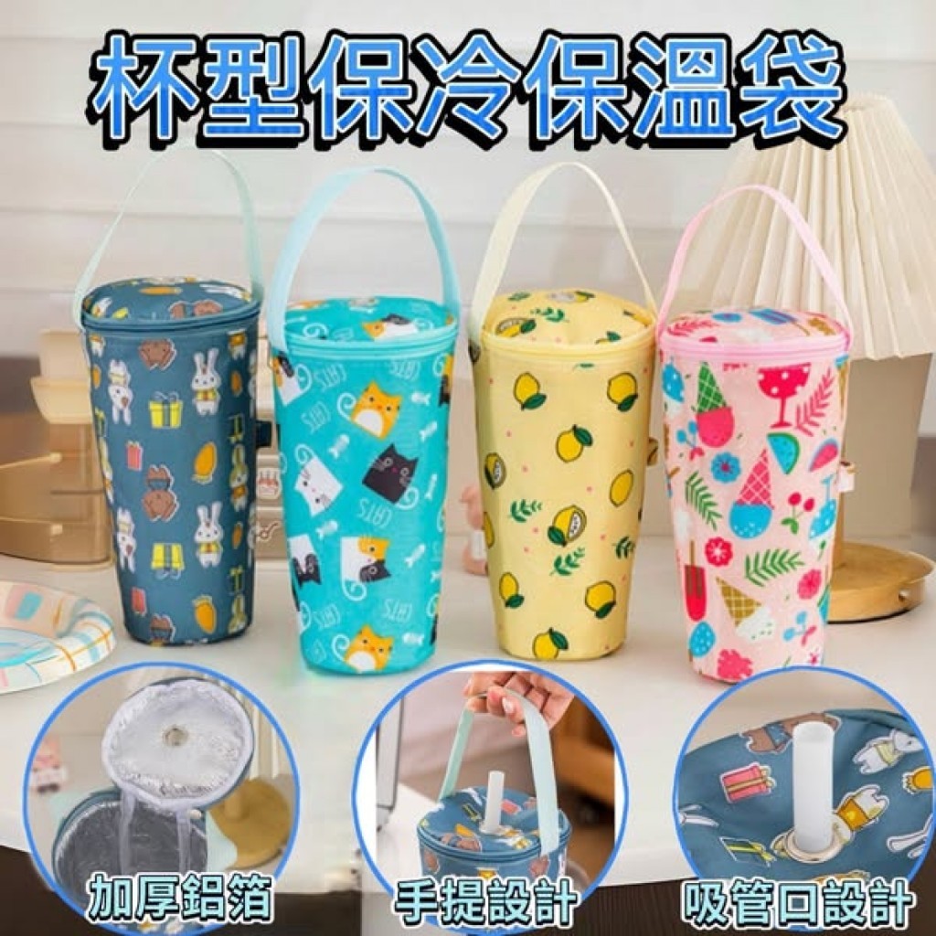 杯型保冷保溫袋 1入 現貨 隔日配 吸管套杯套/保冰保溫杯套/手提杯套/杯套/環保杯套/加厚杯套/飲料袋/飲料手提袋黃色檸檬|藍色小貓|粉色冰淇淋OthersBK批發小舖