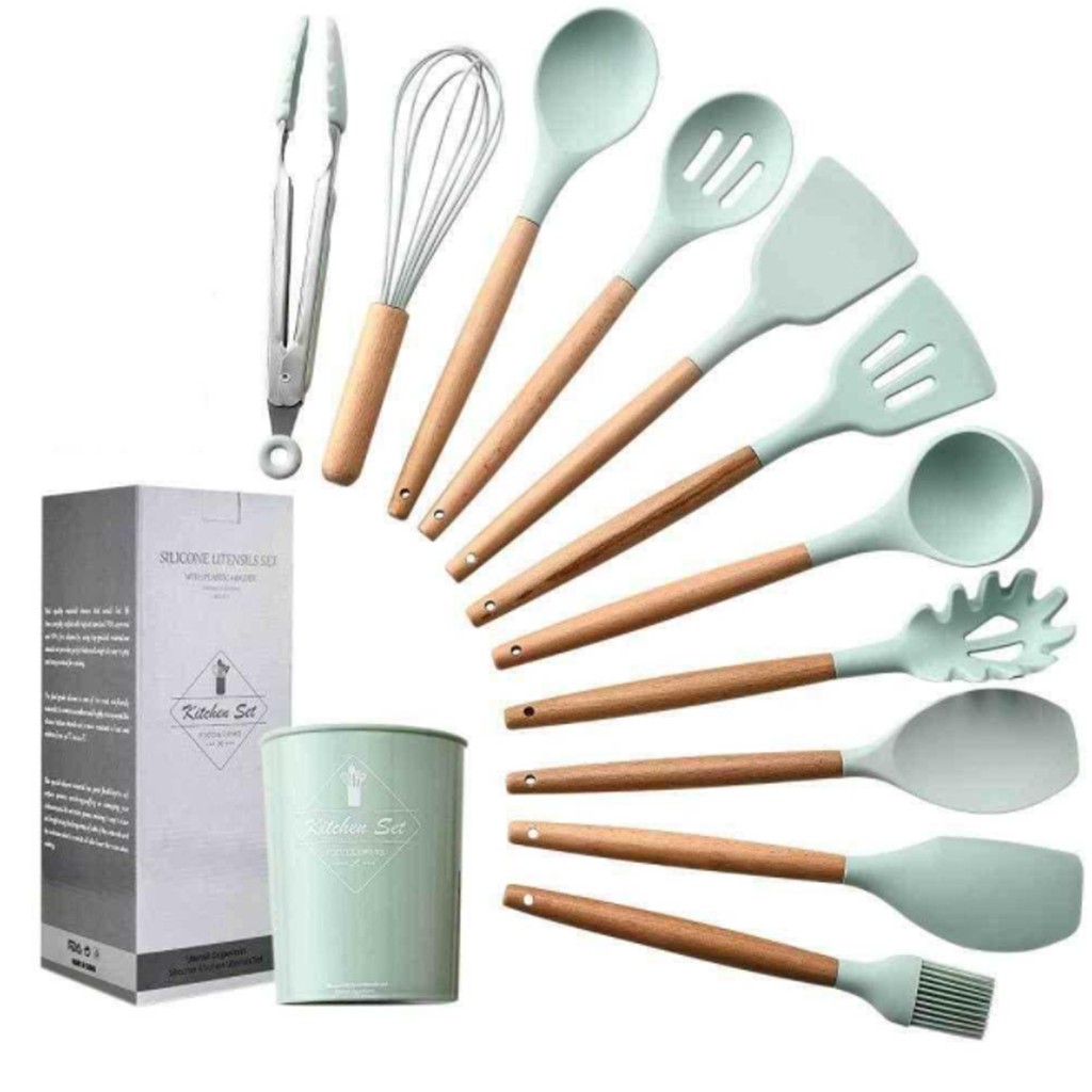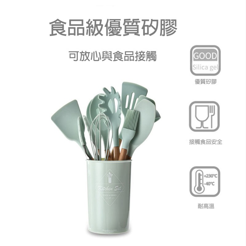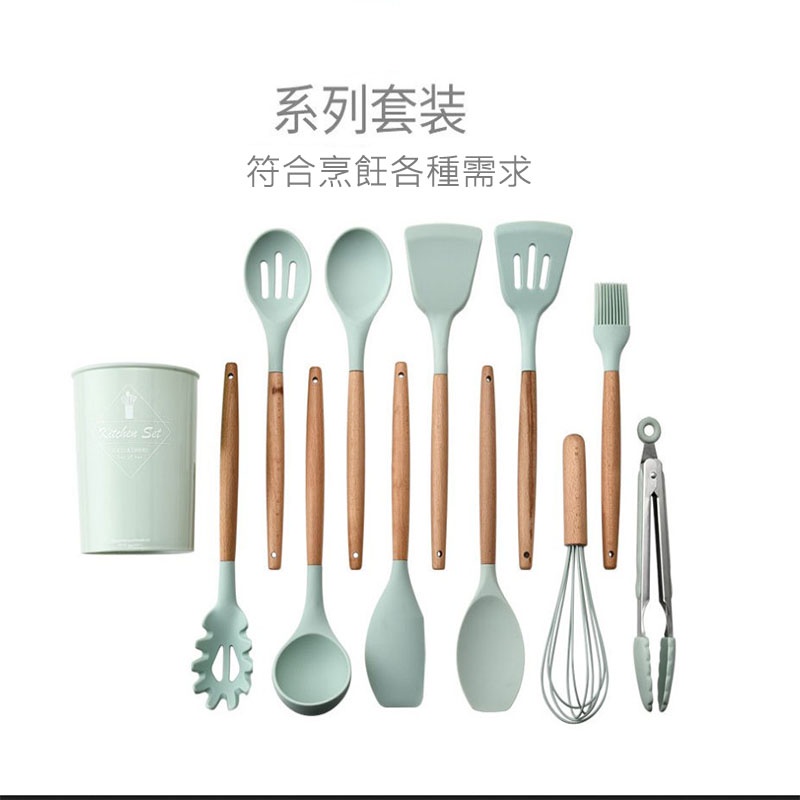 12件套木柄矽膠廚具 1組 現貨 隔日配 不沾鍋專用 不沾鍋廚具 廚具 煎鏟 鍋鏟 湯勺 廚房用具 廚具套組 烘焙餐具粉色(超取最多4組)Spatulas & Cooking TweezersBK批發小舖
