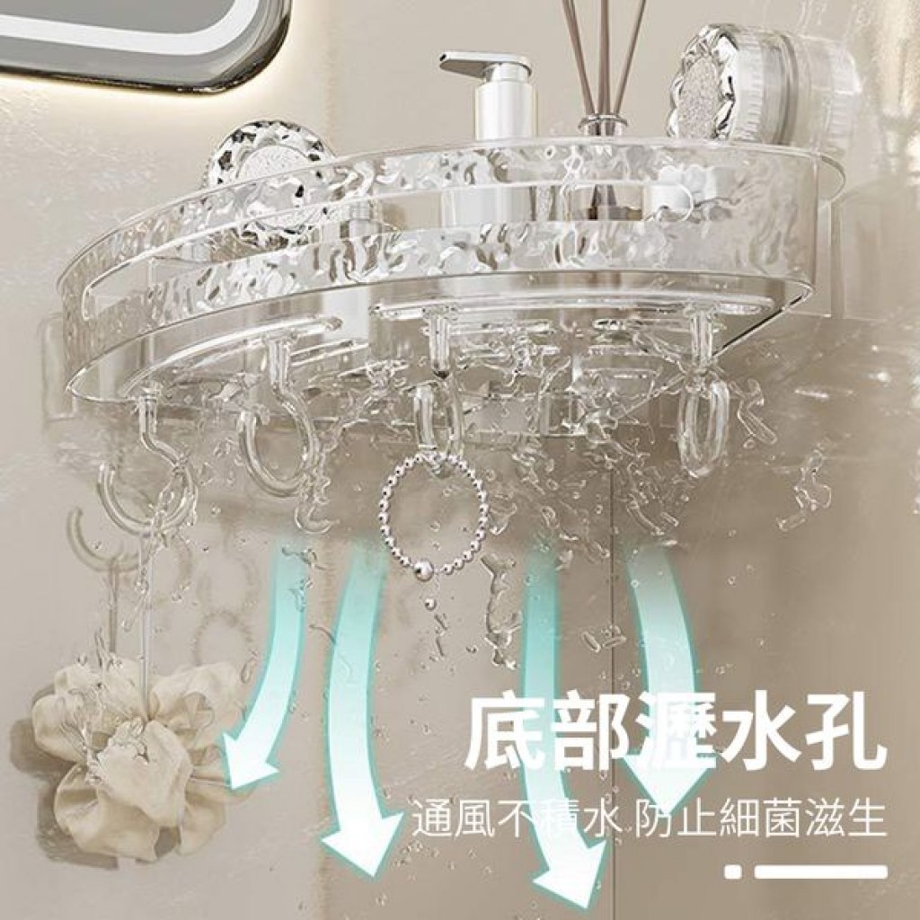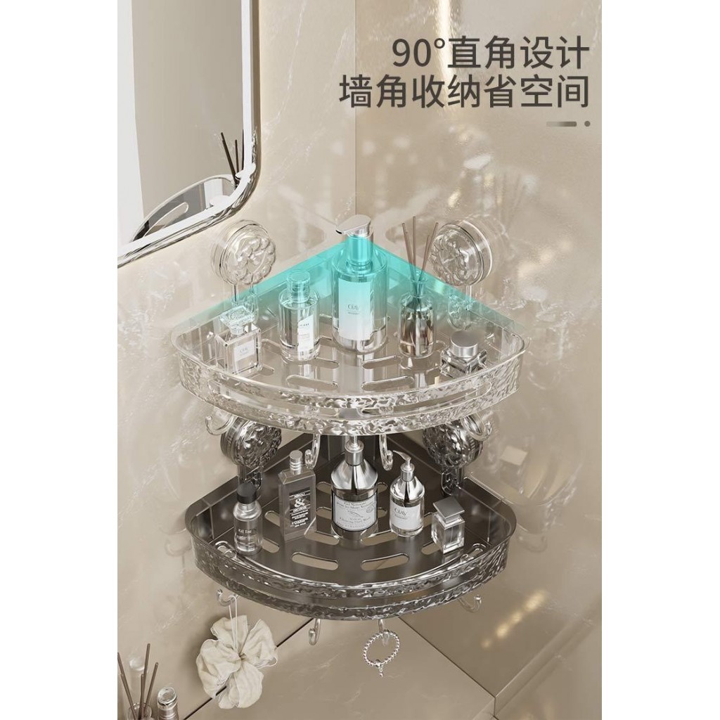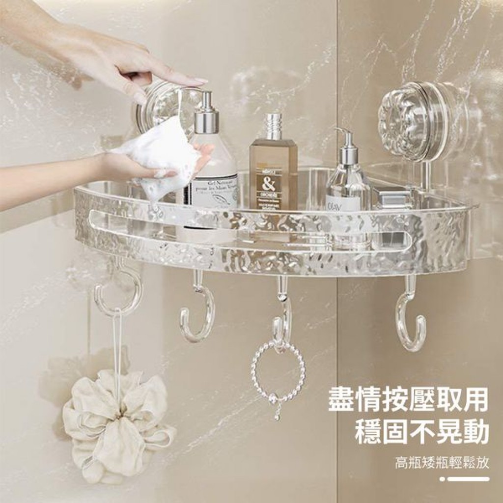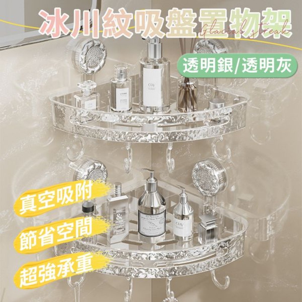 冰川紋吸盤置物架(轉角款) 1入 現貨 隔日配 轉角置物架 吸盤置物架 衛生間浴室架 免打孔置物架 掛壁置物架 三角置透明白|透明灰Shelves & RacksBK批發小舖