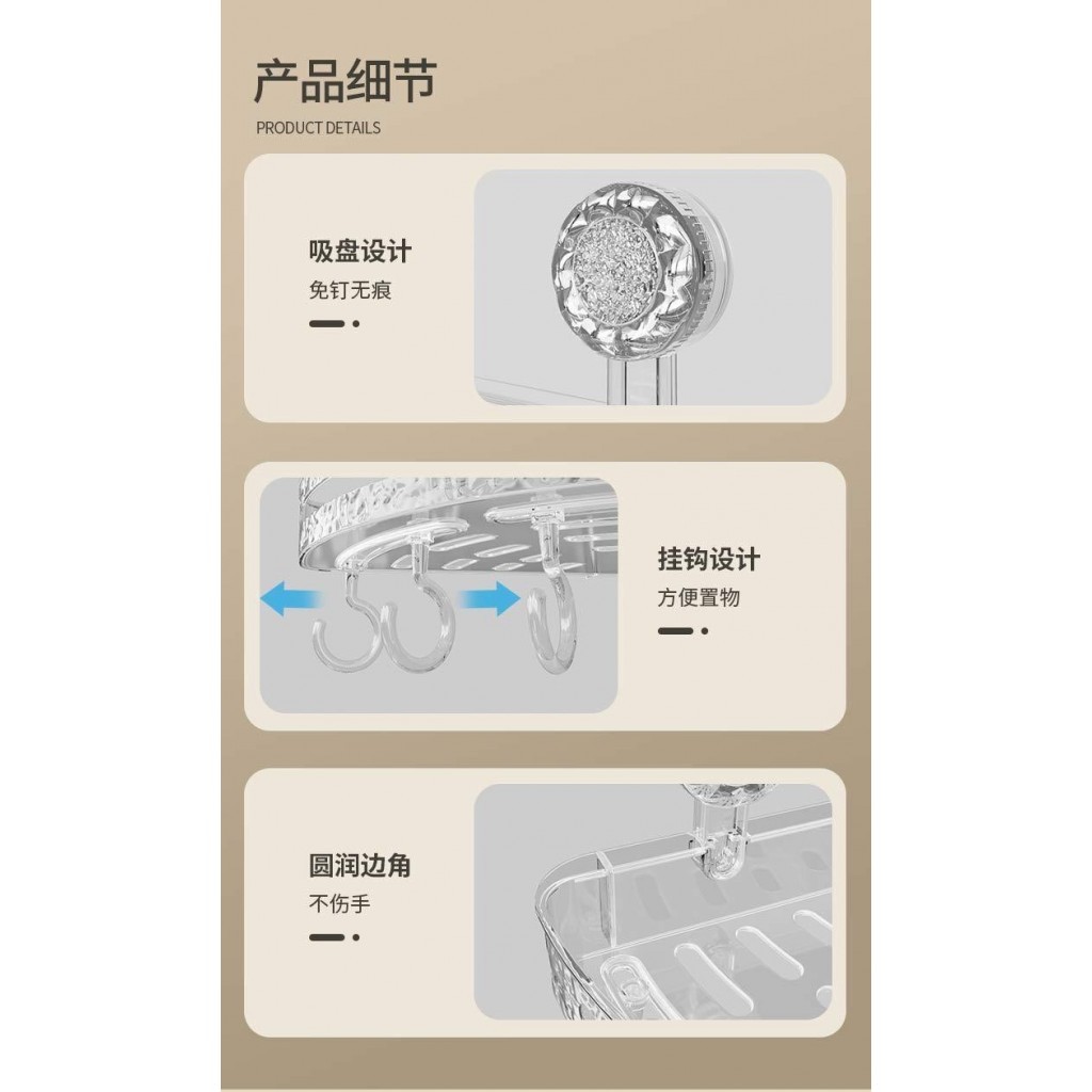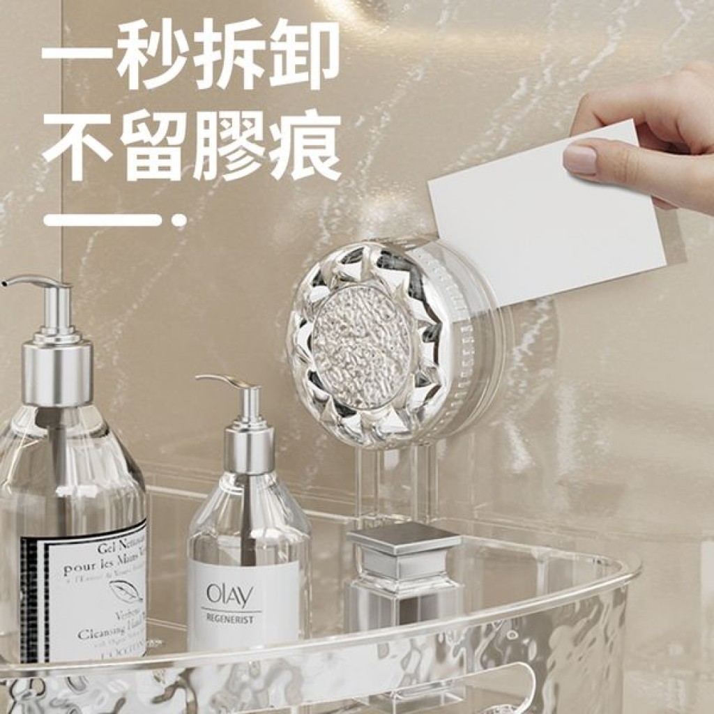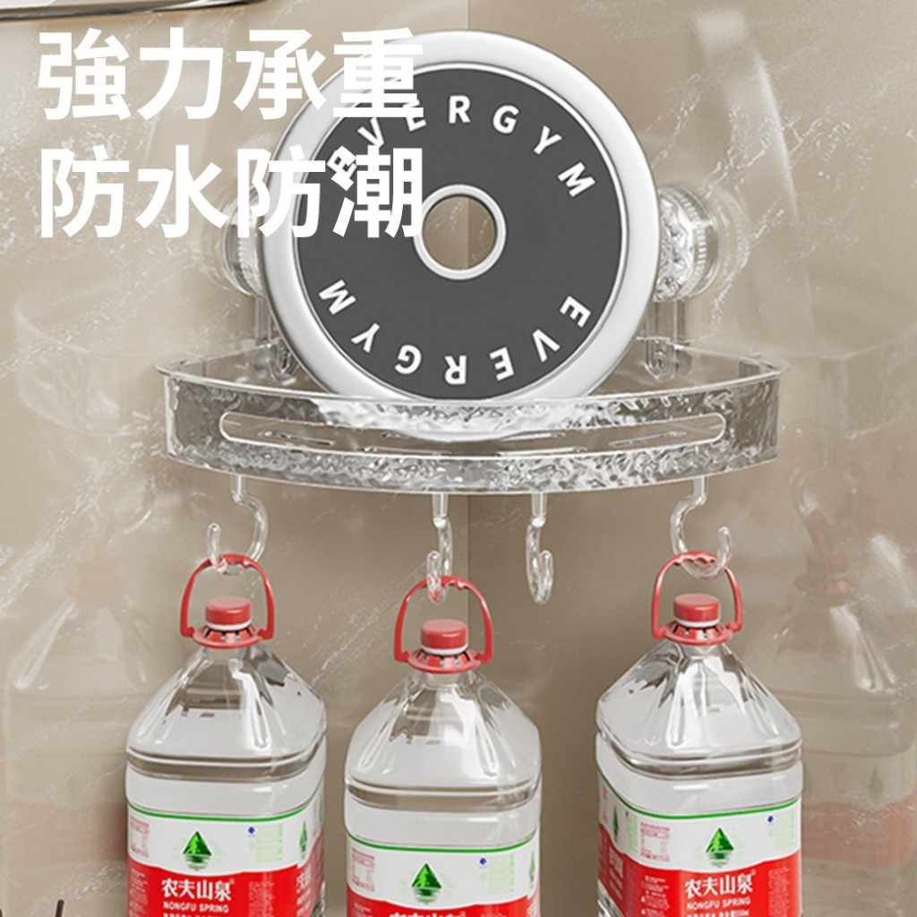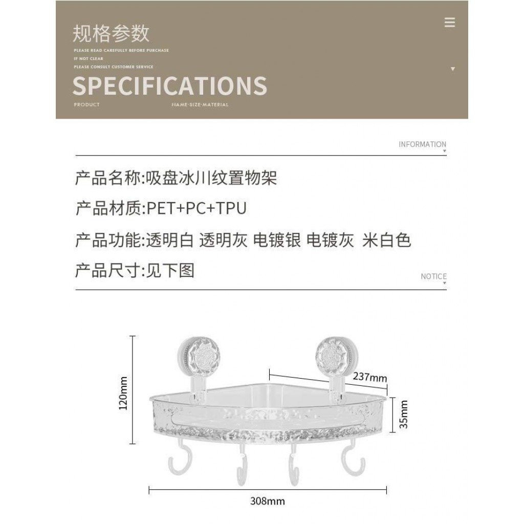 冰川紋吸盤置物架(轉角款) 1入 現貨 隔日配 轉角置物架 吸盤置物架 衛生間浴室架 免打孔置物架 掛壁置物架 三角置透明白|透明灰Shelves & RacksBK批發小舖