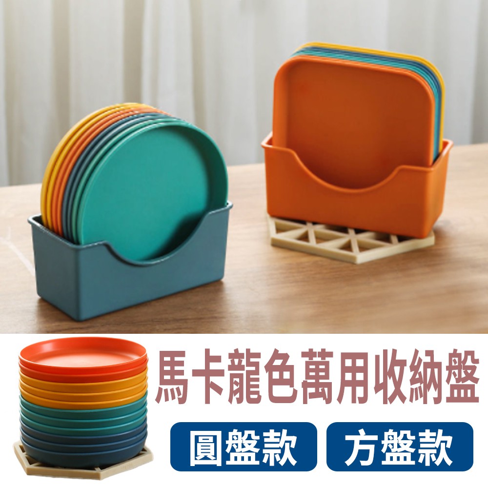 馬卡龍色萬用收納盤 1組 現貨隔日配 小盤子 吐骨盤 點心盤 收納盤 零食盤 食物盤 盆栽盤 水果盤 圓盤 方盤 塑膠盤方形盤一組(含收納座)|圓形盤一組(含收納座)PlatesBK批發小舖