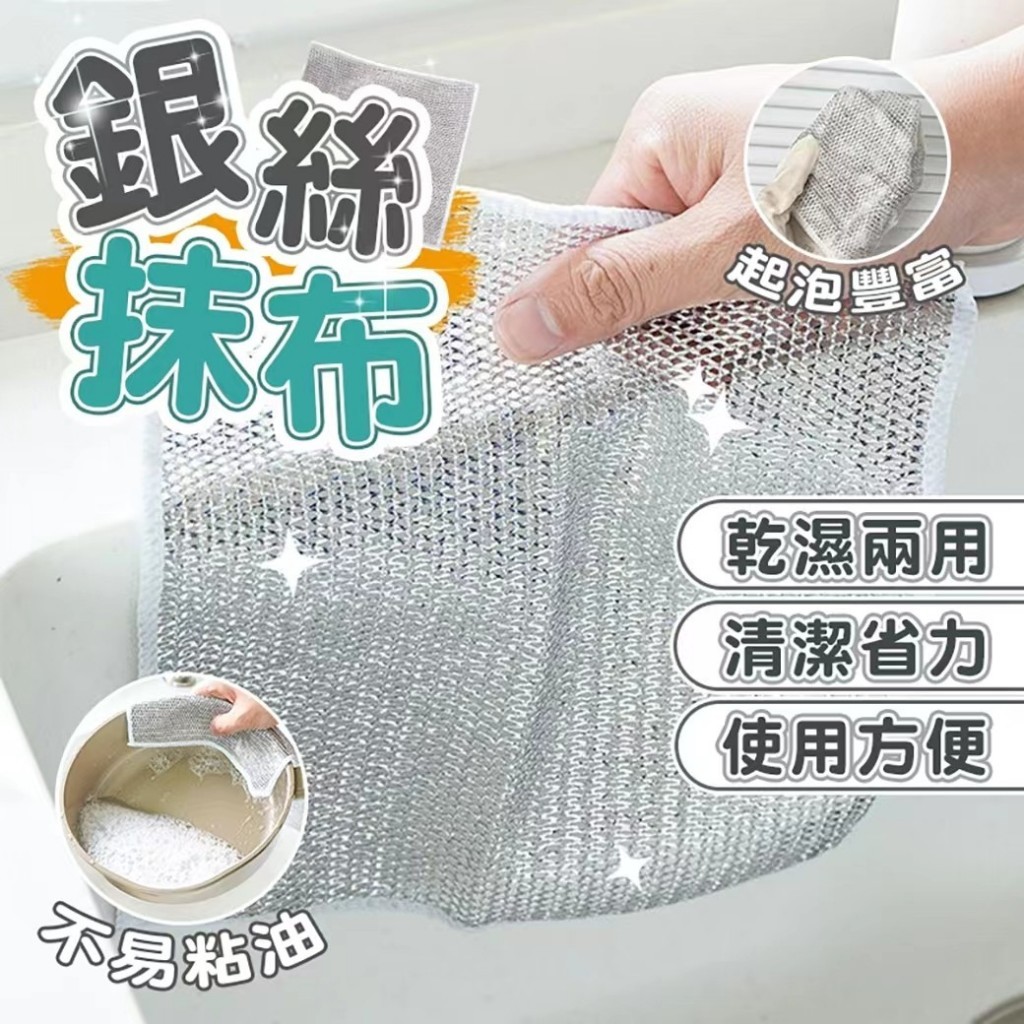 銀絲抹布 1入 現貨 隔日配 銀絲菜瓜布 鋼絲抹布 乾濕兩用 強力去污 鋼絲球抹布 菜瓜布 抹布 清潔抹布 廚房抺布1入|5入Cleaning ClothsBK批發小舖