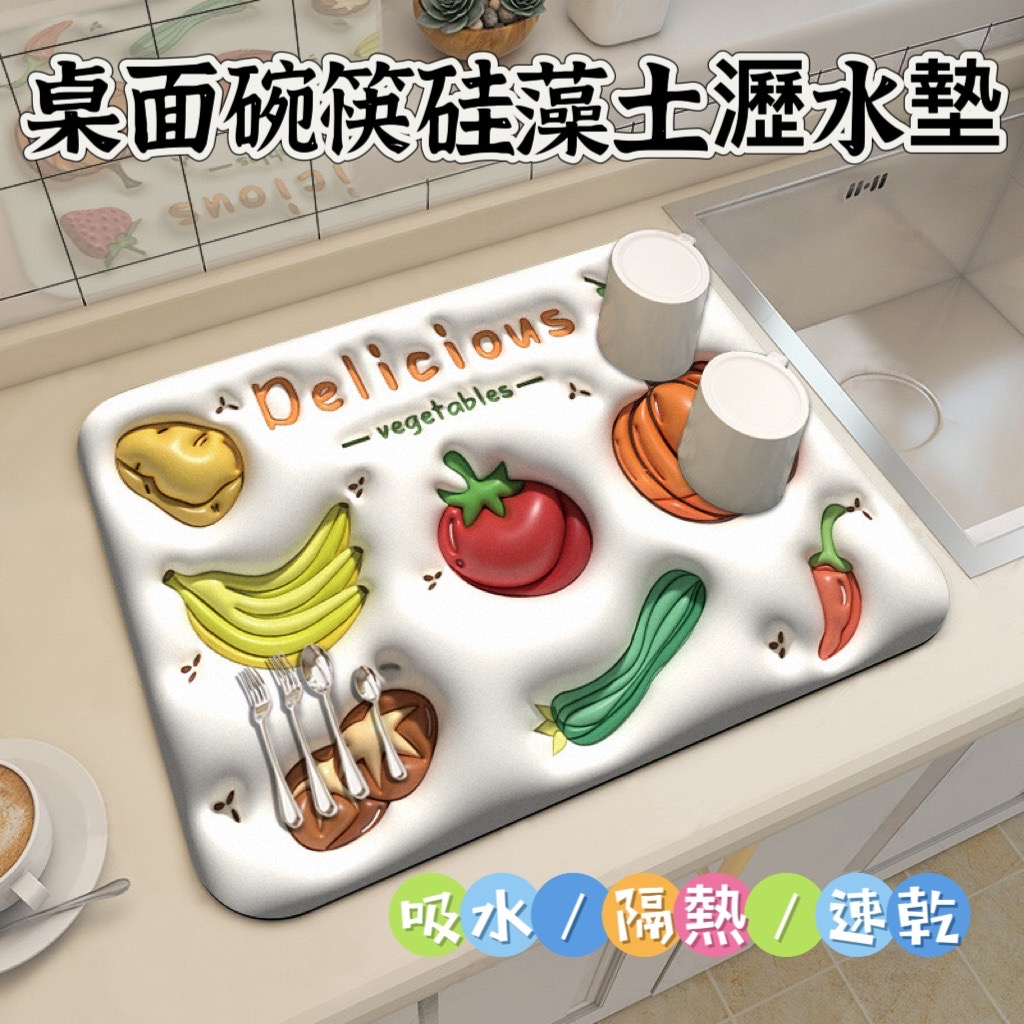 桌面碗筷瀝水墊 1片 現貨隔日配 瀝水墊 吸水墊 廚房臺面吸水墊 洗手臺防濺墊 珪藻軟墊 水杯墊 廚房瀝水墊 防水漬墊1入Placemats & CoastersBK批發小舖