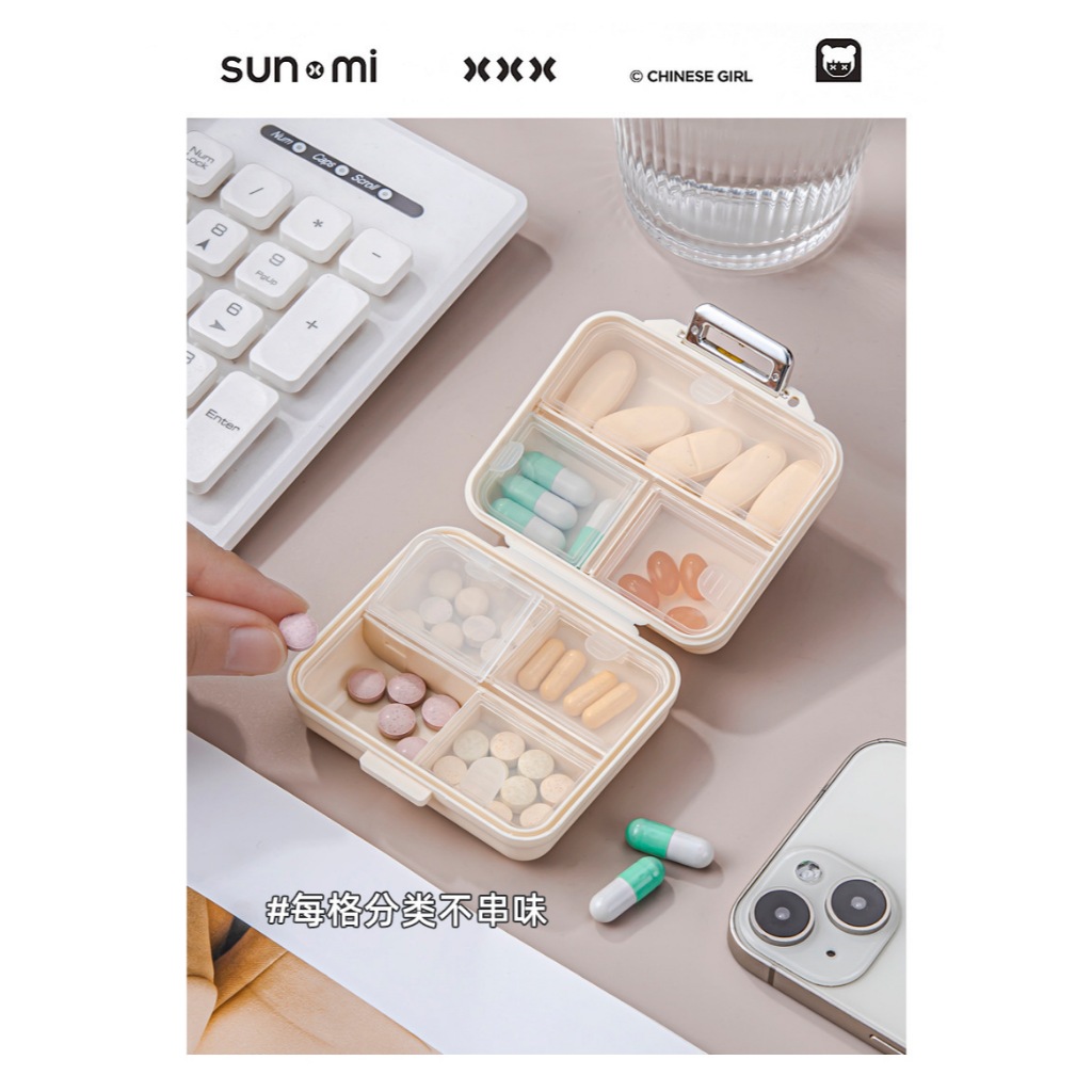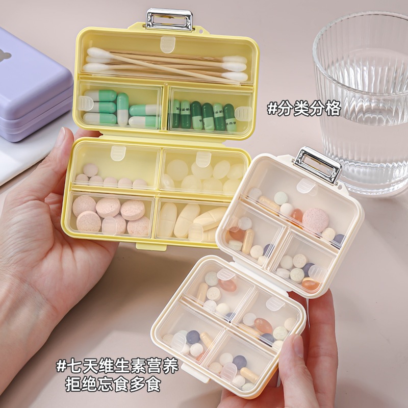 INS奶油密封藥盒 1入 現貨 隔日配 只有黃色 攜帶型分格 藥品收納 便攜型藥盒 藥物收納 藥物收納盒 7格藥盒