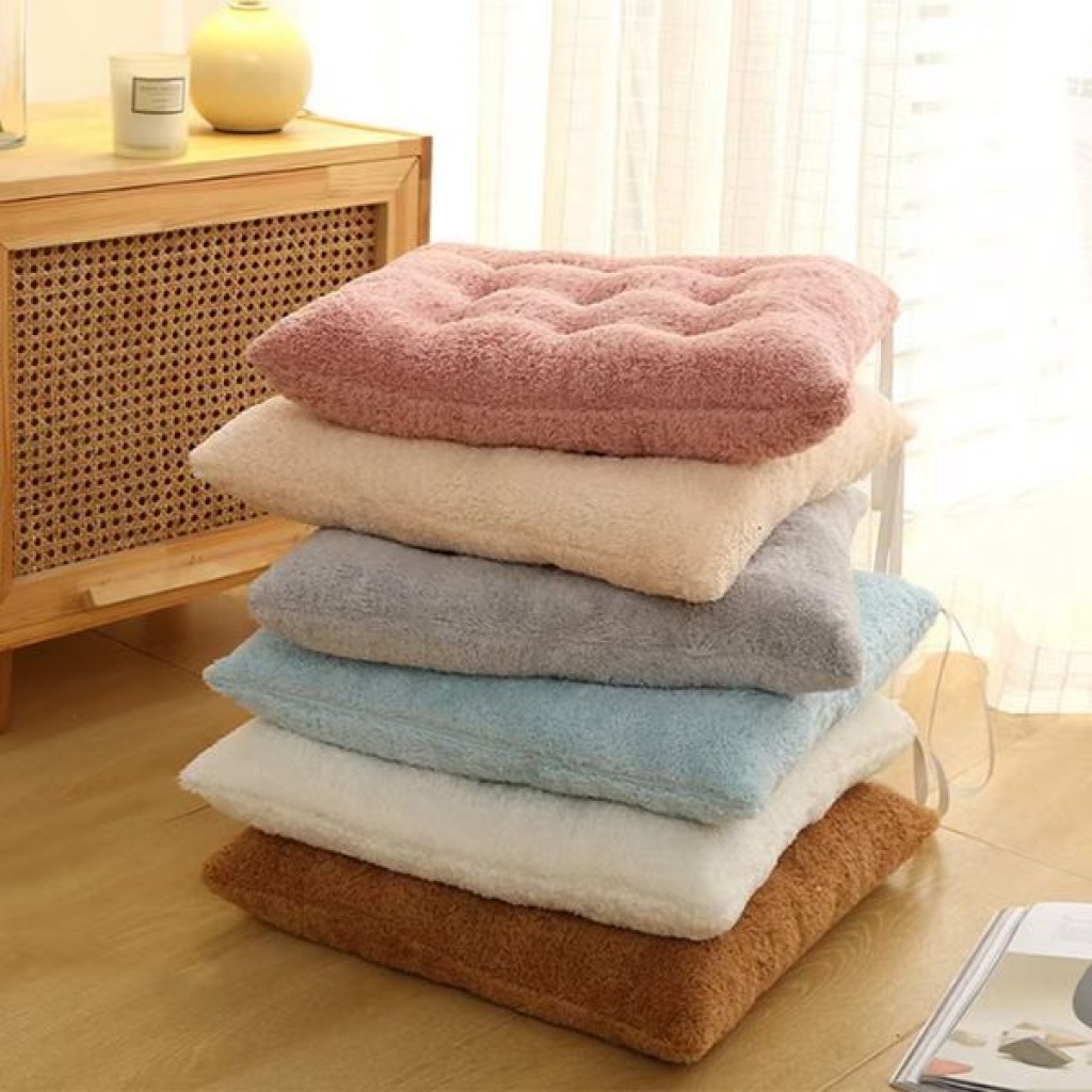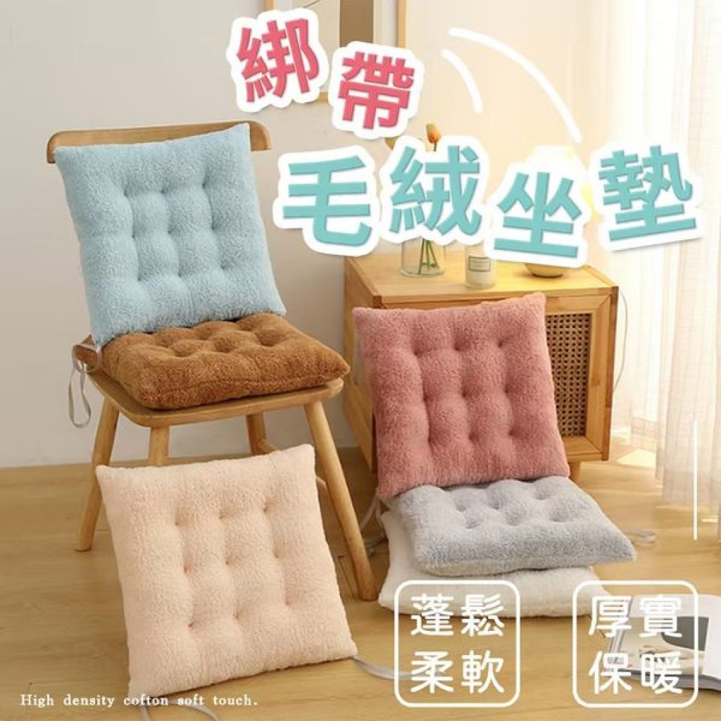 綁帶毛絨坐墊 1入 現貨 隔日配 坐墊 椅墊 純色超軟坐墊 綁帶坐墊 素色坐墊 靠墊 坐墊 椅子墊 軟墊 地板坐墊 綁帶灰色|粉色|藍色|咖啡色CushionsBK批發小舖