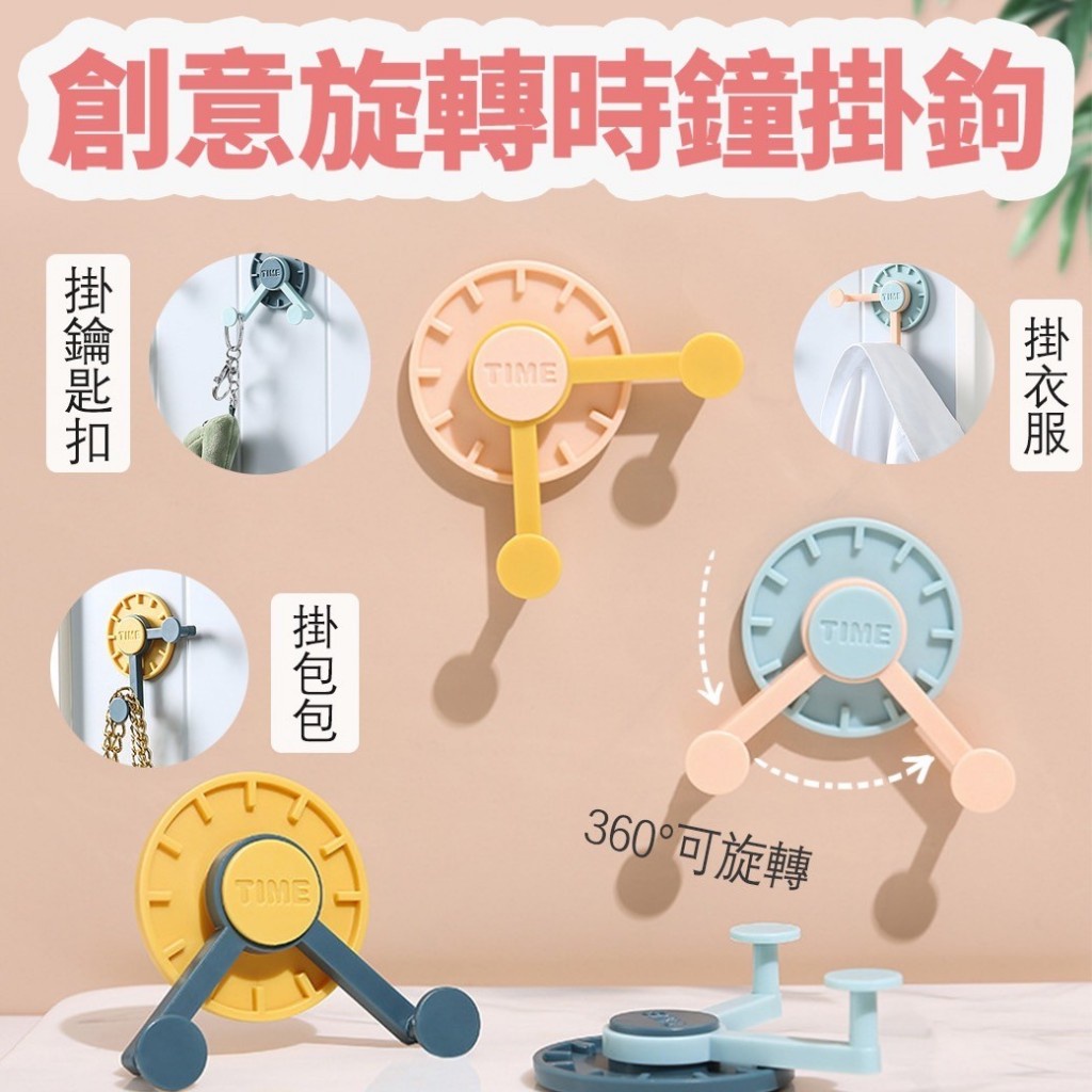 創意旋轉時鐘掛鉤 1組 現貨 隔日配 免打孔掛勾 掛勾 時鐘掛勾 旋轉掛勾 掛勾 造型掛勾 置物掛勾{BK批發小舖}1入|5入|10入HooksBK批發小舖
