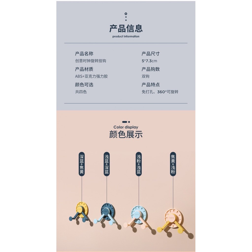 創意旋轉時鐘掛鉤 1組 現貨 隔日配 免打孔掛勾 掛勾 時鐘掛勾 旋轉掛勾 掛勾 造型掛勾 置物掛勾{BK批發小舖}