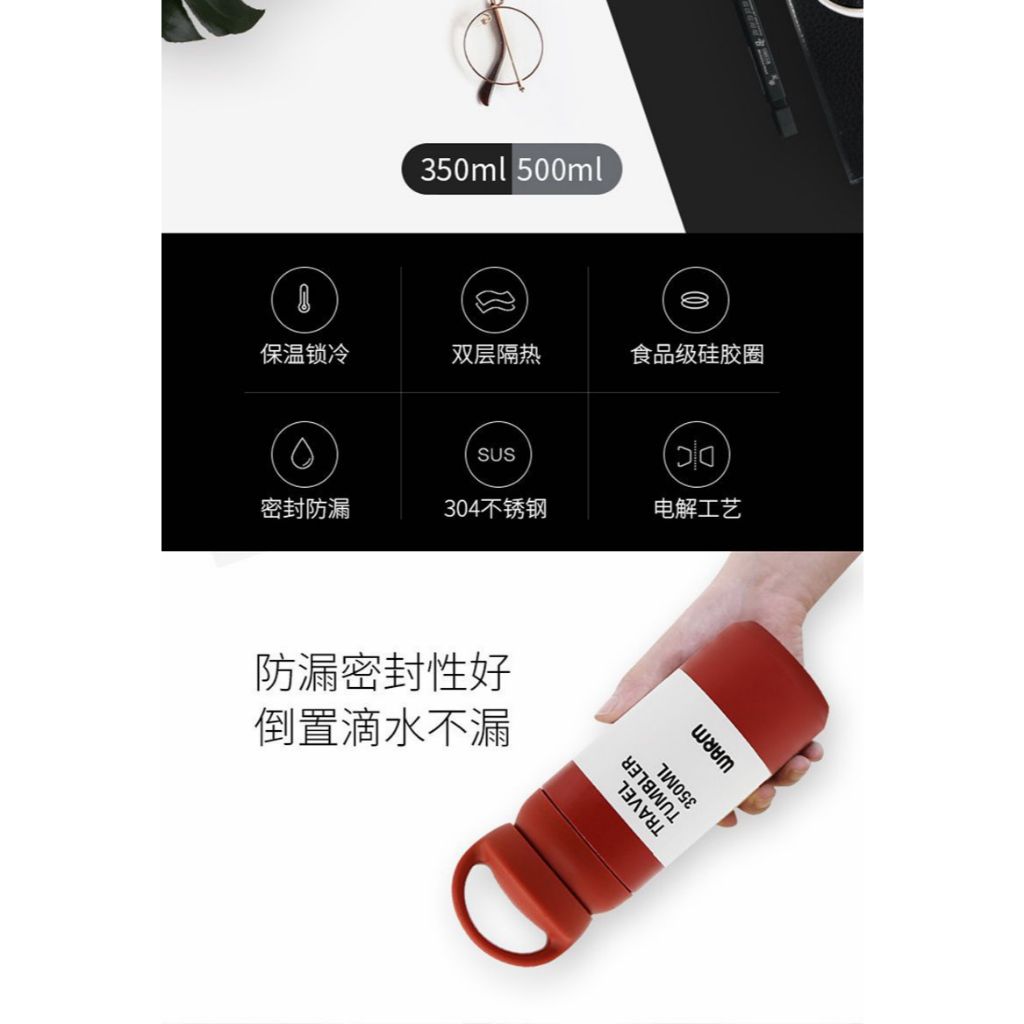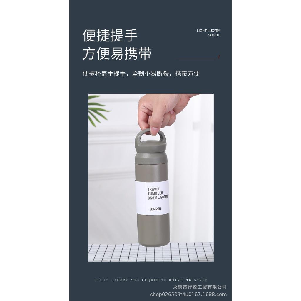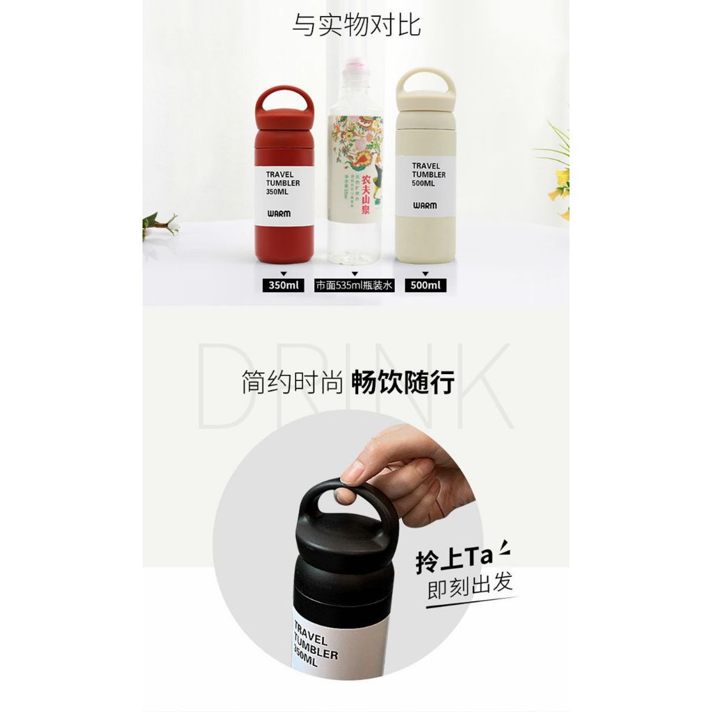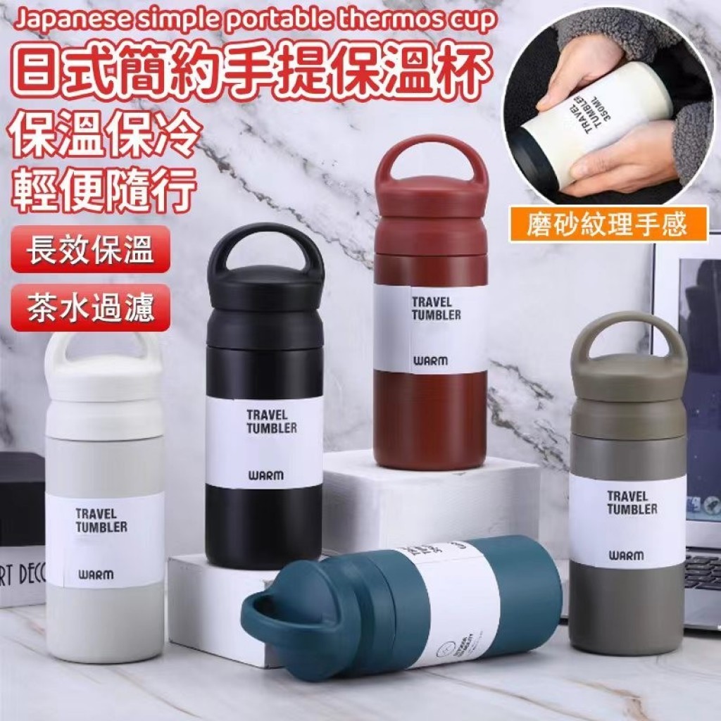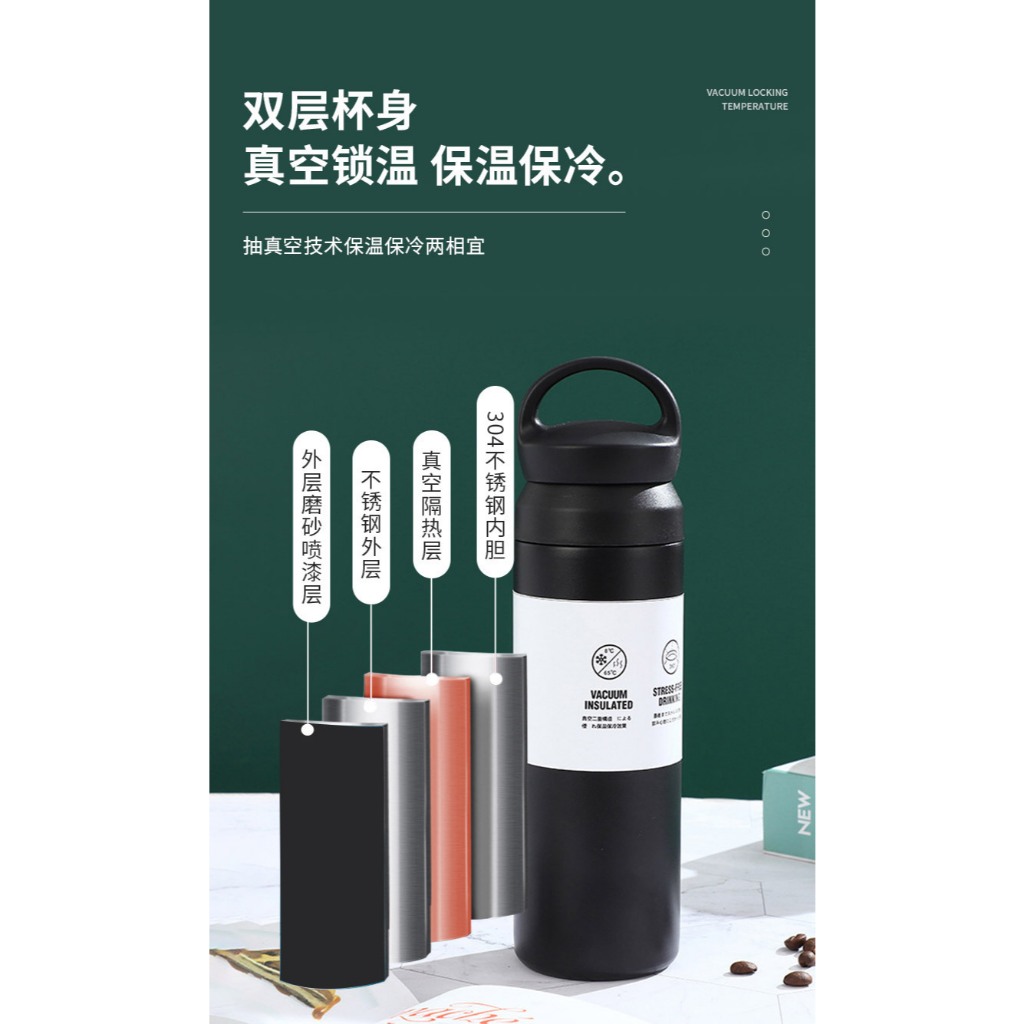 日式簡約手提保溫杯500ML 1入 現貨 隔日配 保冷保溫 304不鏽鋼保溫杯 真空保溫杯 磨砂 保溫瓶 素色保溫杯黑色|紅色|象牙白|灰綠色Water Bottles & AccessoriesBK批發小舖