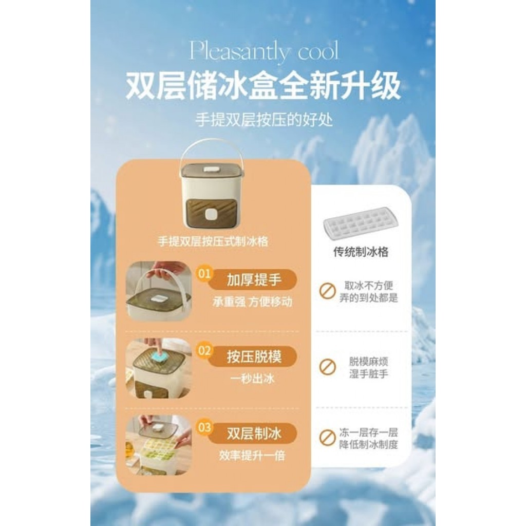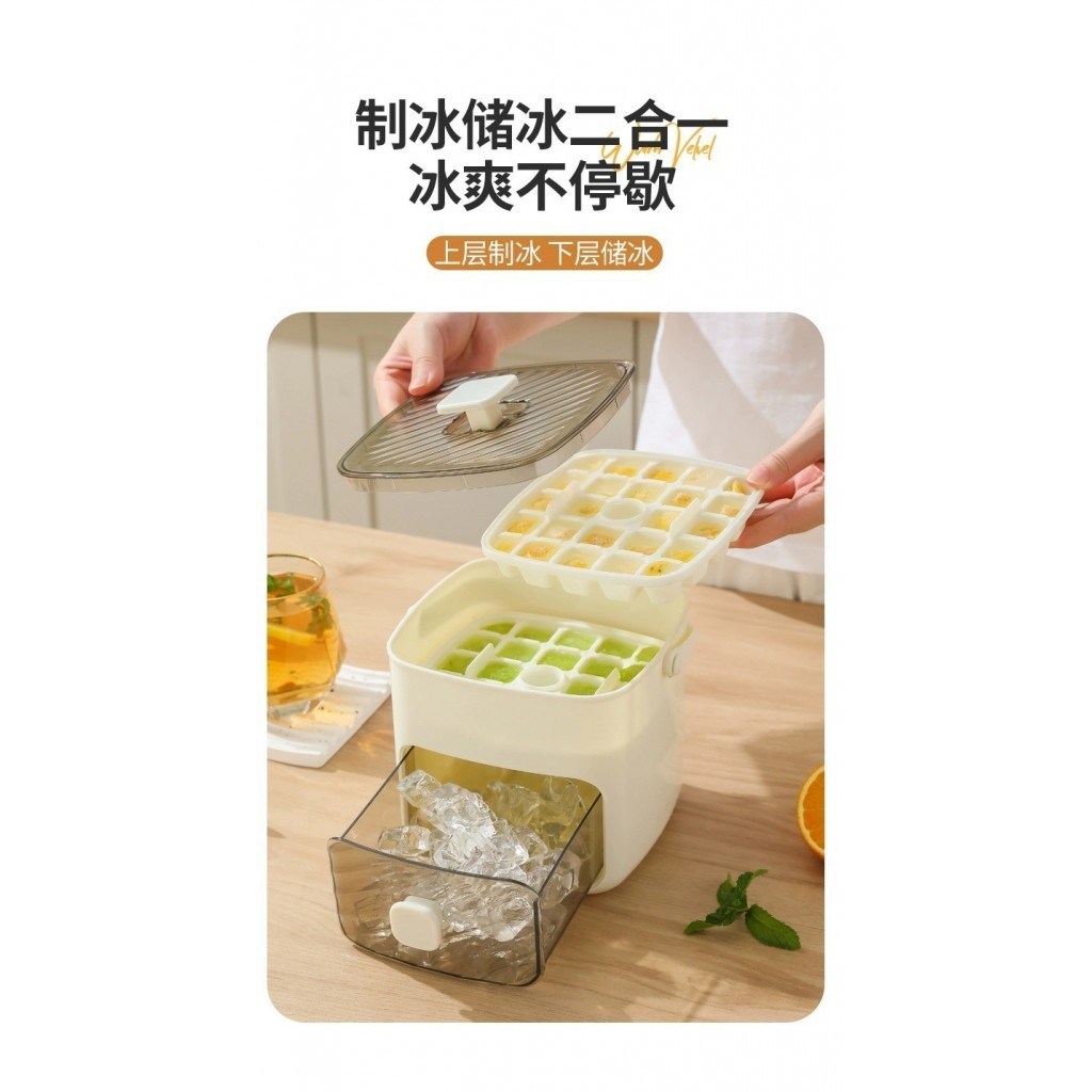 秒按壓手提雙層製冰盒 1組 現貨隔日配 雙層製冰盒 家用製冰器 雙層按壓式製冰盒 大容量48格 冰塊模具 手提冰塊收納盒白色|綠色Food StorageBK批發小舖