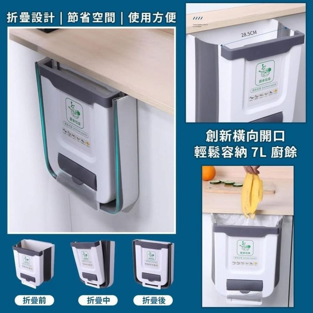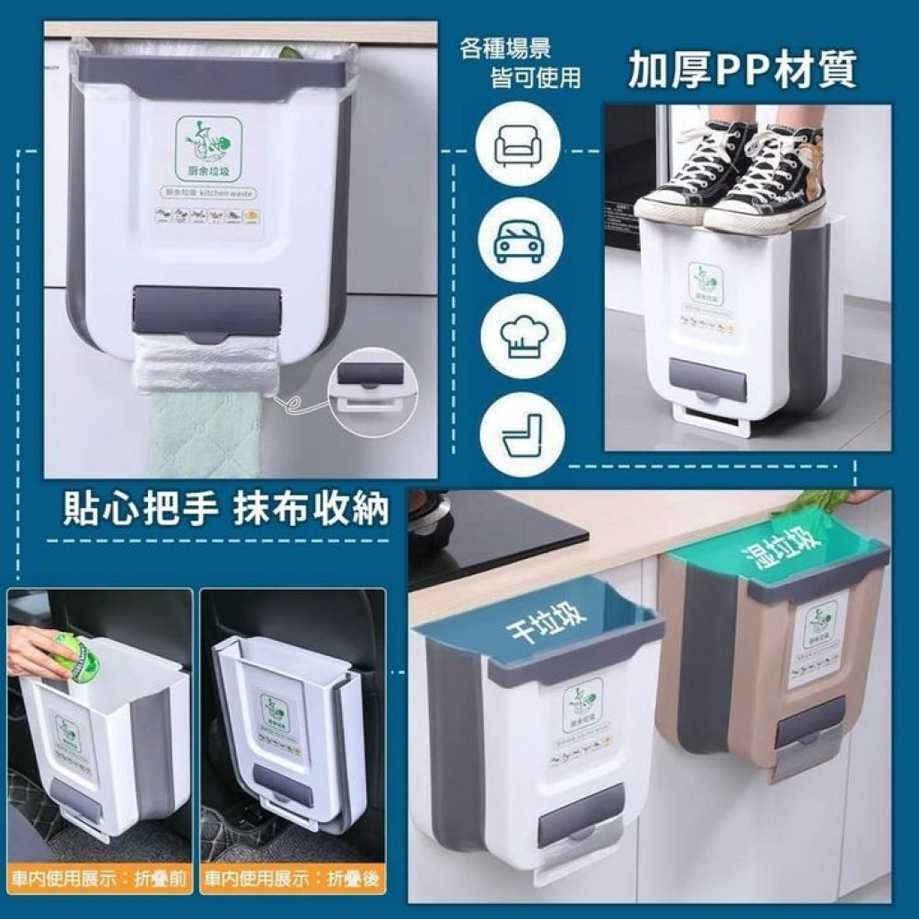 壁掛式可折疊垃圾桶 1入 隔日配 7L 摺疊垃圾桶 收納垃圾桶 可摺疊掛式垃圾桶 折疊 懸掛式垃圾桶 折疊壁掛式