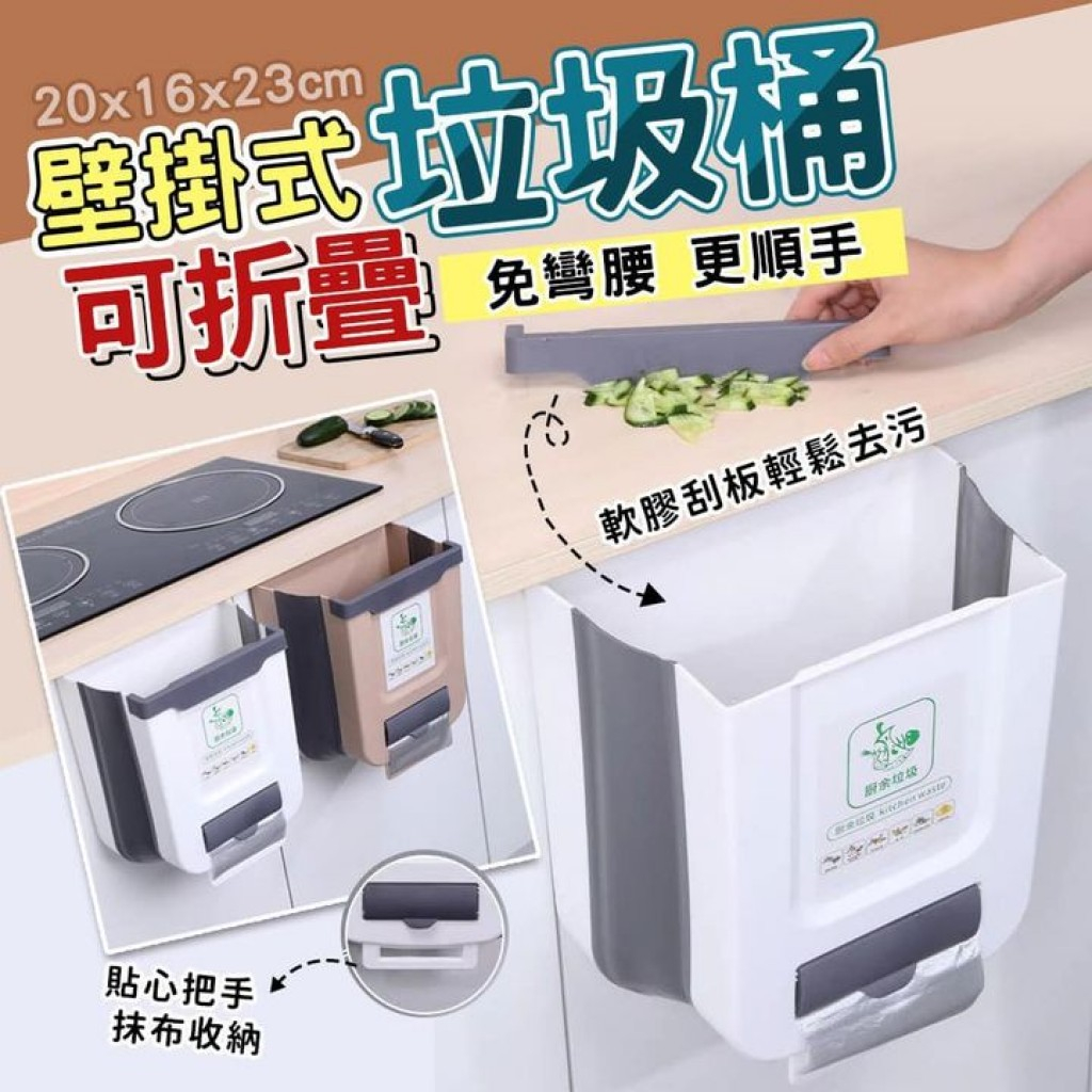壁掛式可折疊垃圾桶 1入 隔日配 7L 摺疊垃圾桶 收納垃圾桶 可摺疊掛式垃圾桶 折疊 懸掛式垃圾桶 折疊壁掛式咖啡|白色Trash & Recycling BinsBK批發小舖