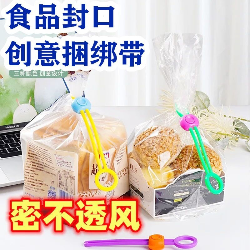 創意食品封口綁帶 1條 現貨 隔日配 食品束口袋 食品密封 彈力拉環扣帶 迷你彈力繩綁帶 彈力繩扣 快速綑綁 綁帶繩扣1條OthersBK批發小舖