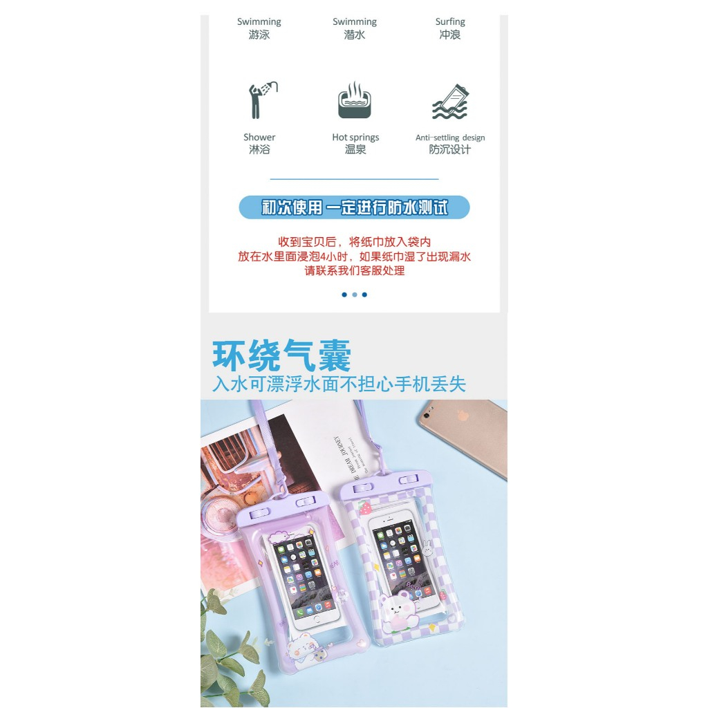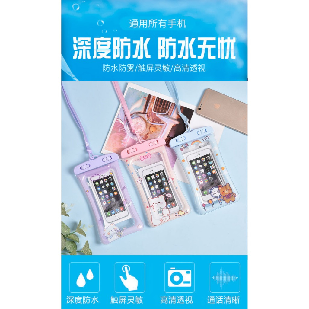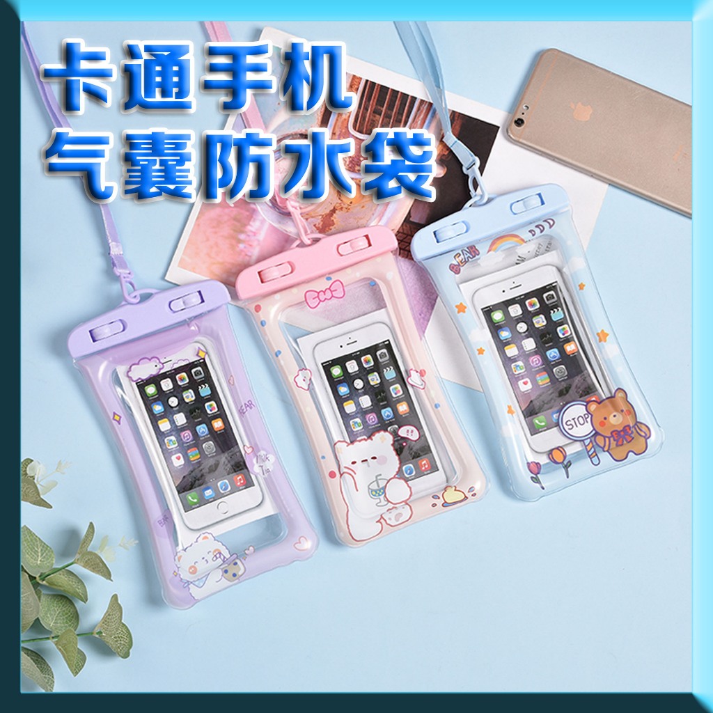 氣囊手機防水袋 1入 現貨 隔日配 氣囊防水袋 浮潛可用 卡通防水套 可觸控 手機防水袋 漂流袋 防水包 防水手機套紫色|粉色|藍色|白色Mobile PouchesBK批發小舖