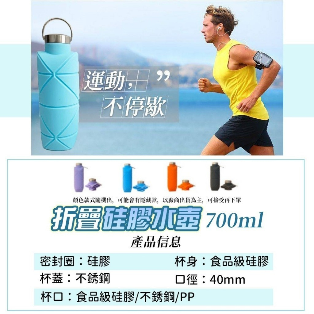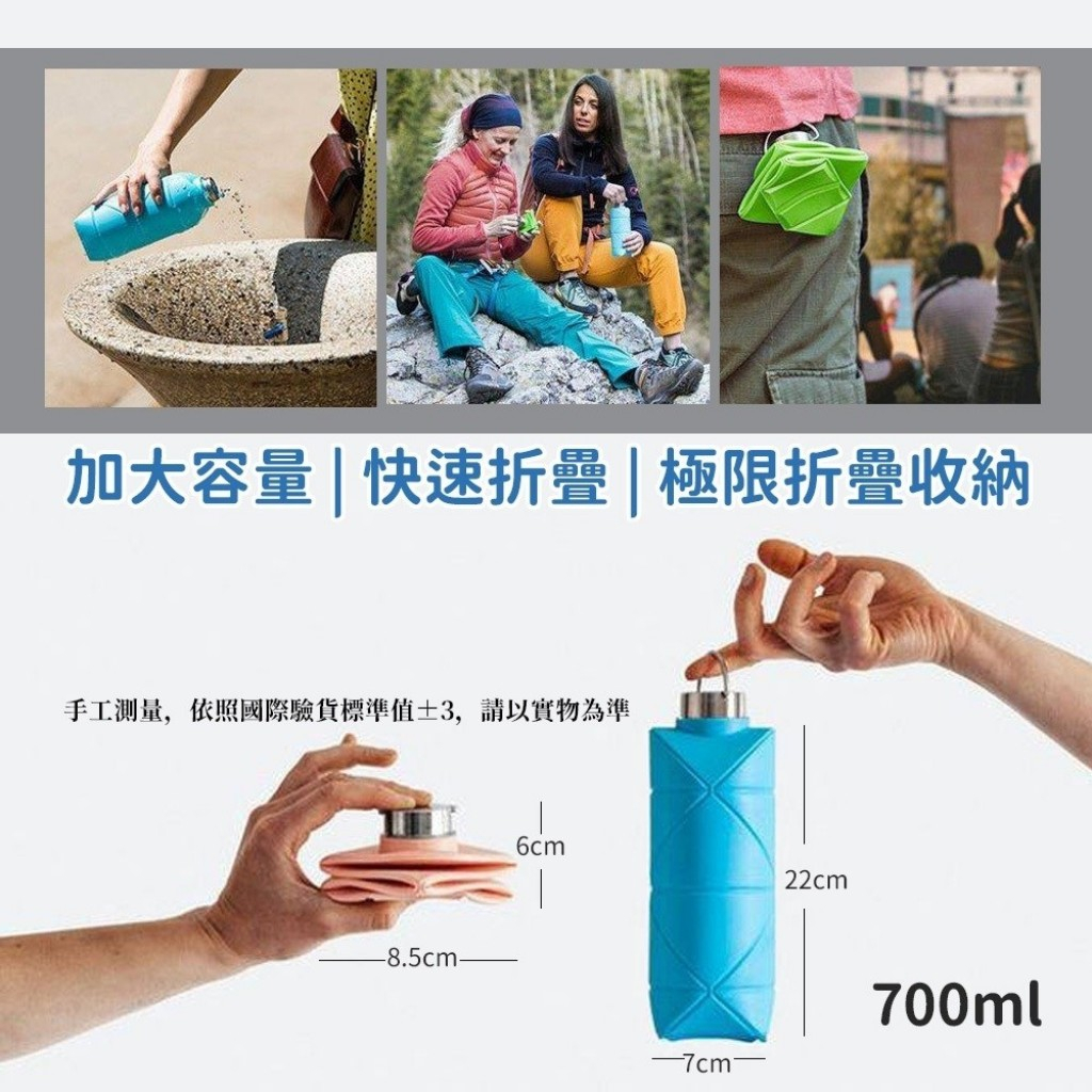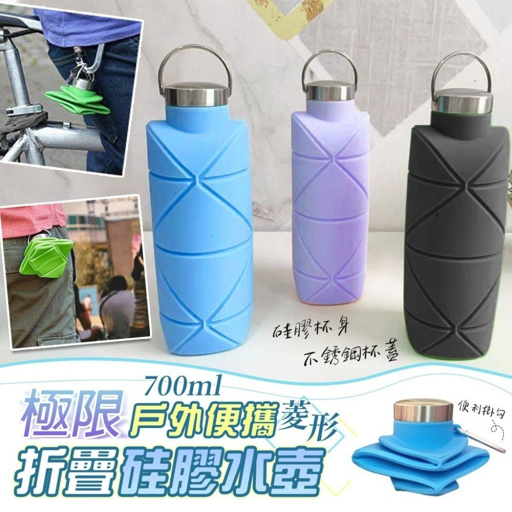 戶外便攜折疊矽膠水壺 1入隔日配 700ml 戶外運動水壺 便攜騎行旅行 伸縮水杯 水壺 摺疊水壺 便攜水壺 登山 慢跑藍色|黑色|粉色|天藍色Fitness EquipmentBK批發小舖