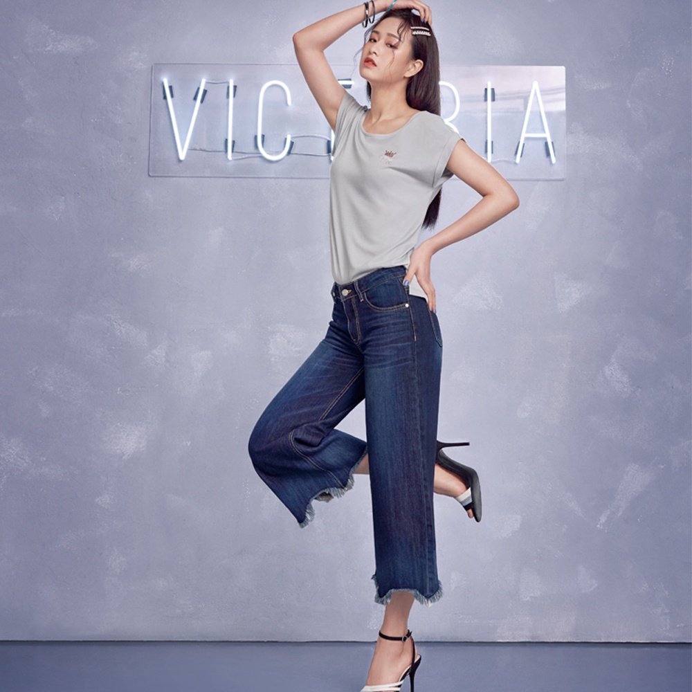 VICTORIA中高腰下襬鬚邊波浪七分寬褲-V55204-78深藍,M|深藍,L|深藍,XL|深藍,SShortsBIG TRAIN 官方旗艦店