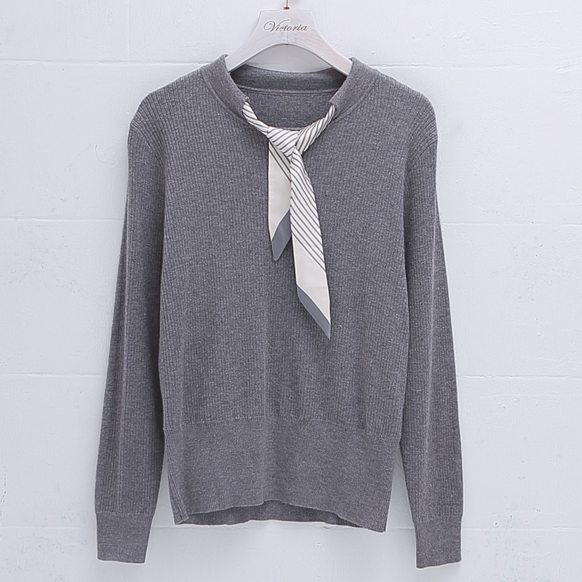 VICTORIA絲巾領節針織線衫 V65147-85深灰,S|深灰,M|深灰,LBIG TRAIN 官方旗艦店
