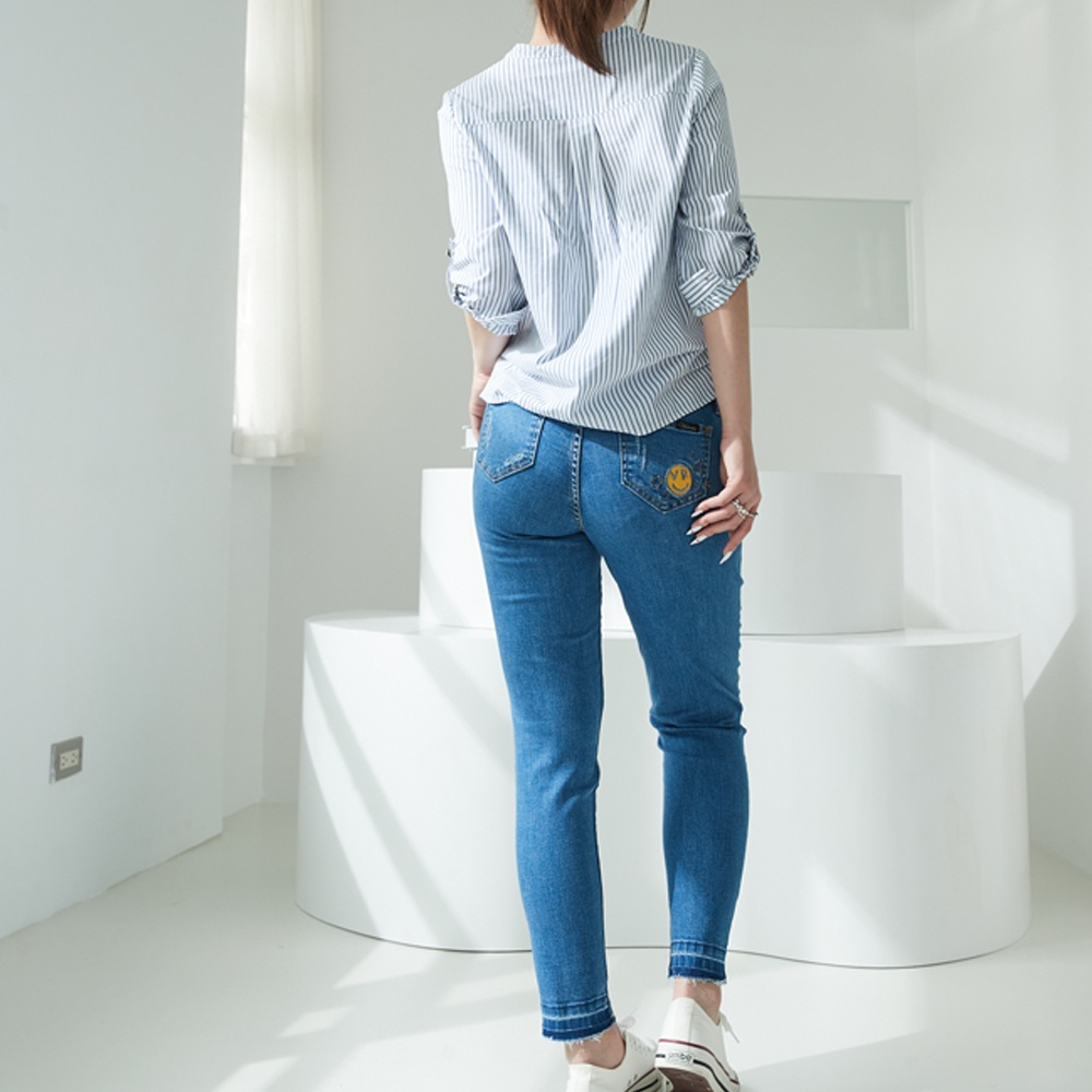 VICTORIA吸排笑臉百搭男友褲-VW5118-74中藍,S|中藍,M|中藍,L|中藍,XL|中藍,2LBIG TRAIN 官方旗艦店