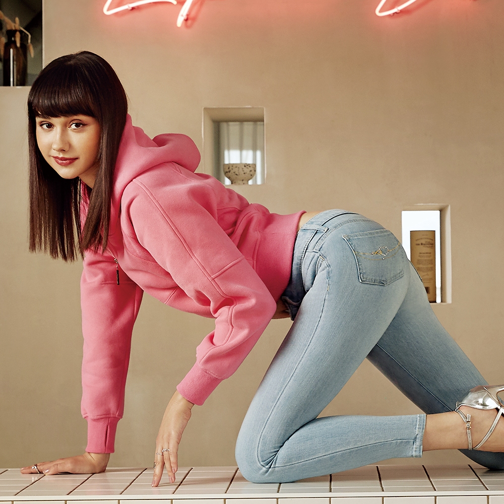 VICTORIA中腰彈性無限愛鑲鑽七分褲 -V55229-76