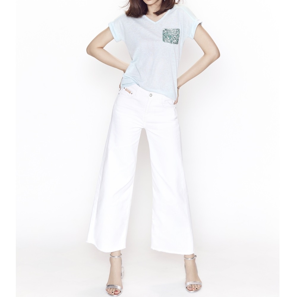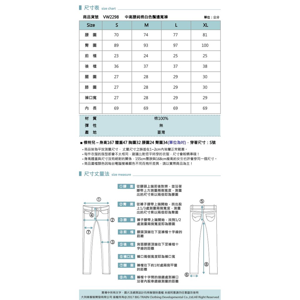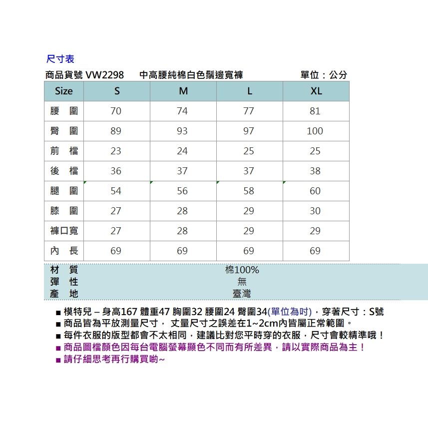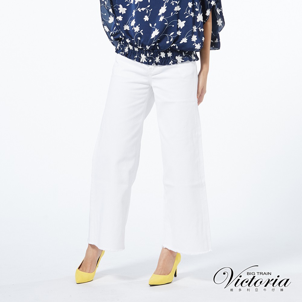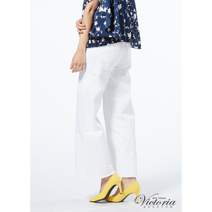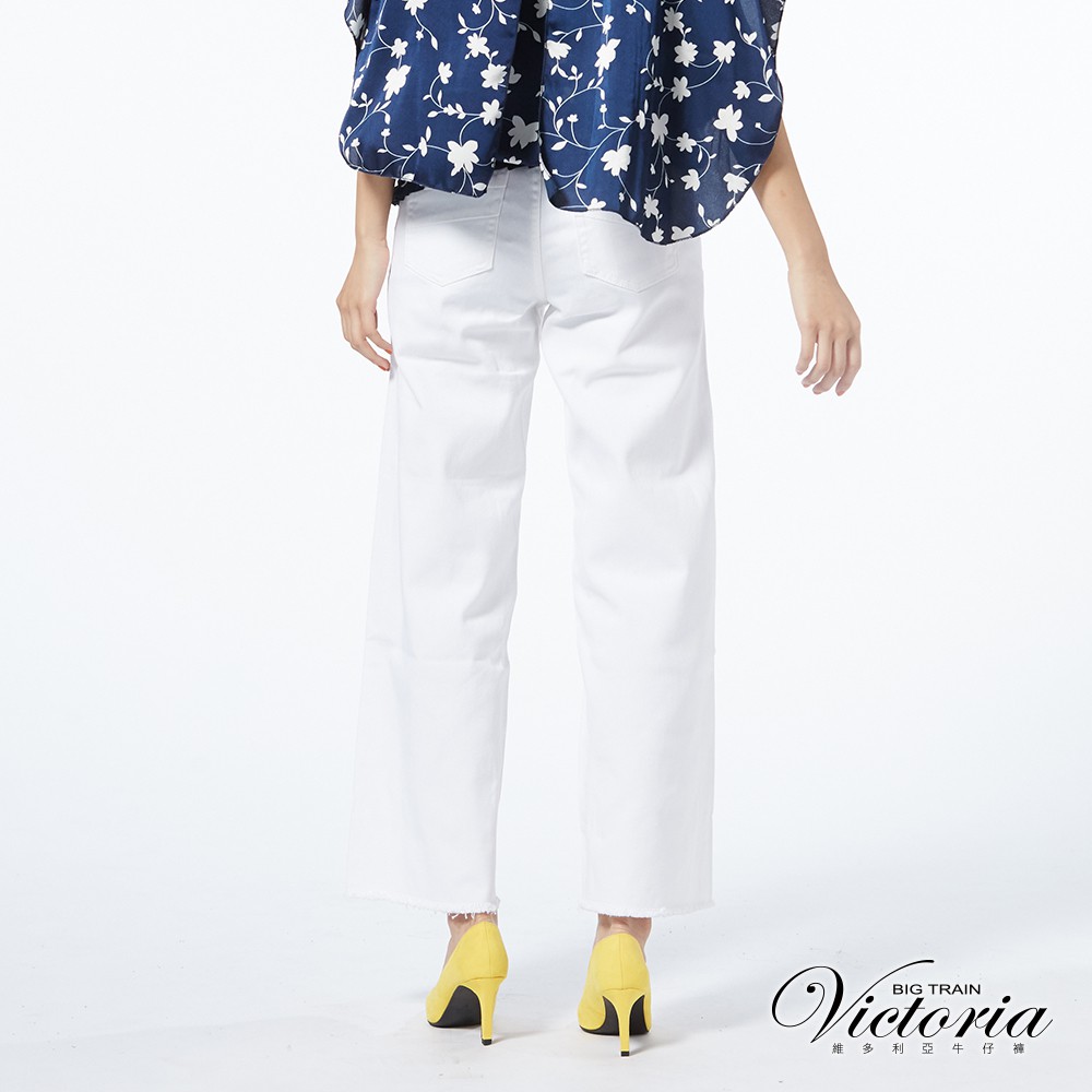 VICTORIA 中高腰純棉白色鬚邊寬褲 -白VW2298-80S|M|L|XLBIG TRAIN 官方旗艦店