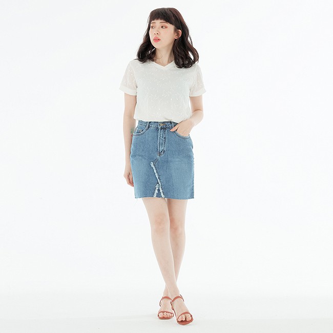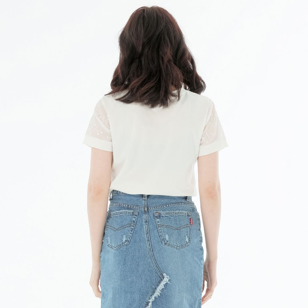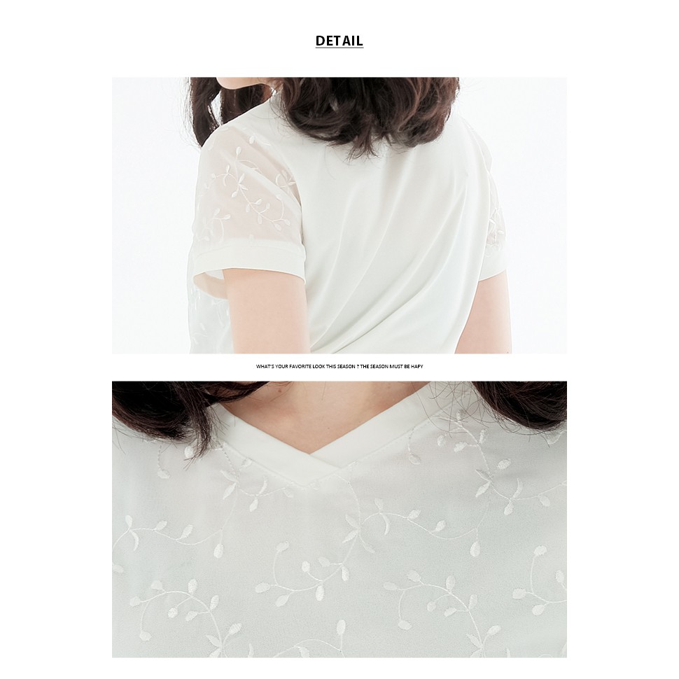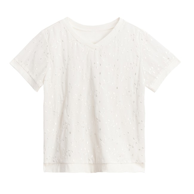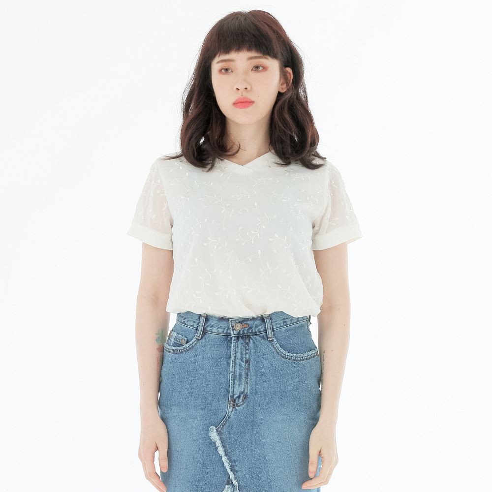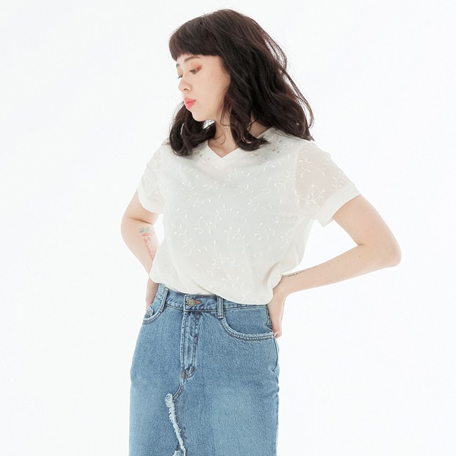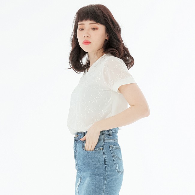 VICTORIA 素色繡花雪紡女上衣-牙白V85487M|L|ST-shirtsBIG TRAIN 官方旗艦店