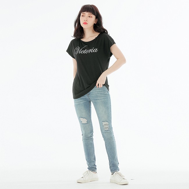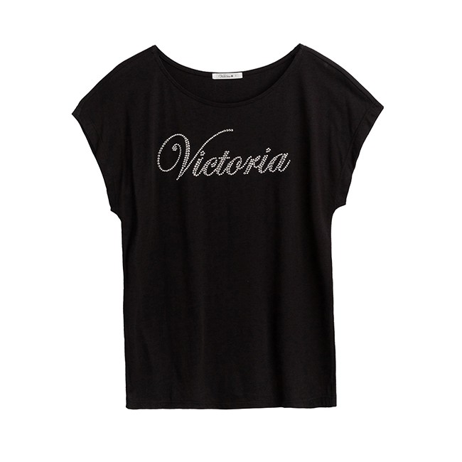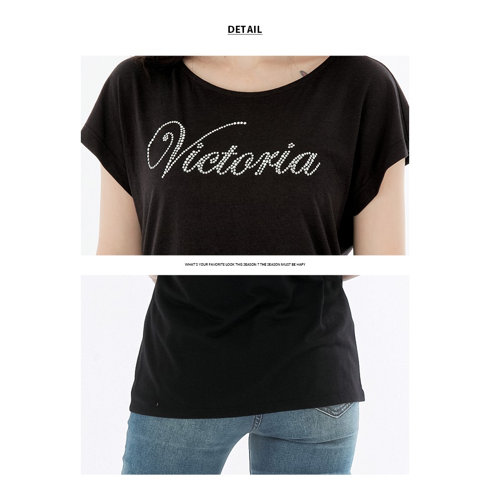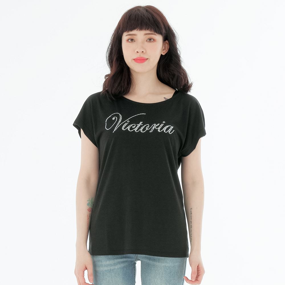 VICTORIA LOGO排字鋁片女上衣-黑S|M|LT-shirtsBIG TRAIN 官方旗艦店