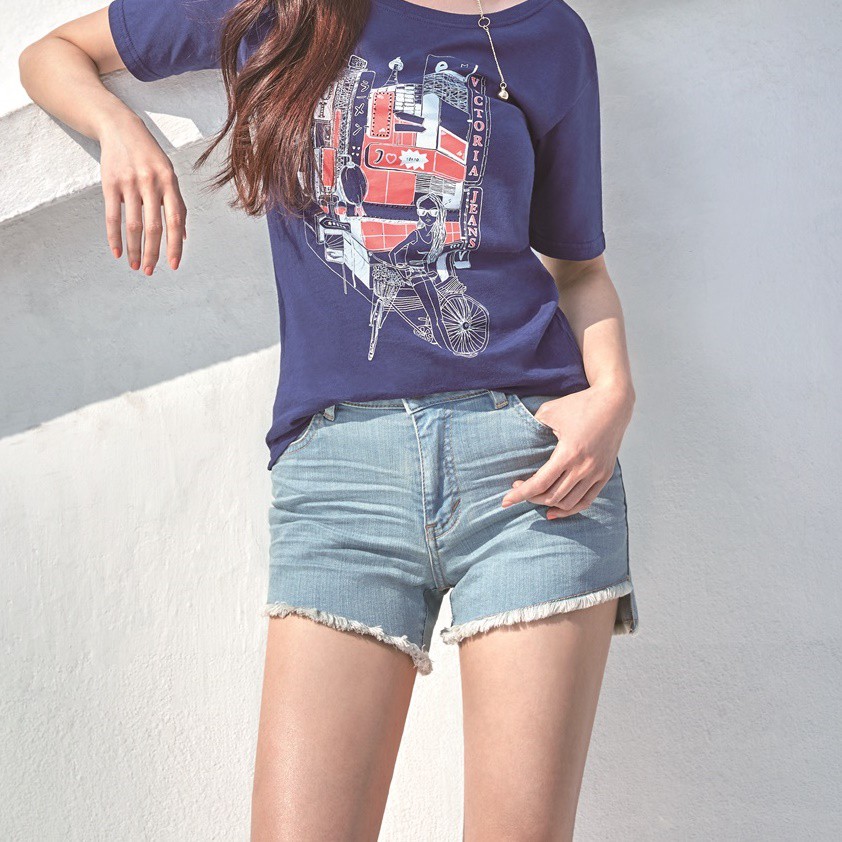 VICTORIA 超彈立體割破鬚邊短褲 淺藍 V552212L|S|M|L|XLShortsBIG TRAIN 官方旗艦店