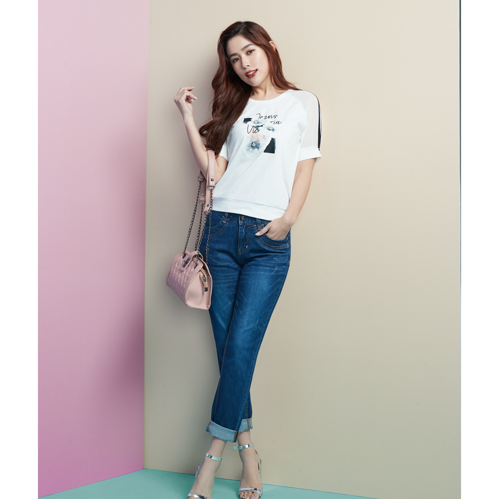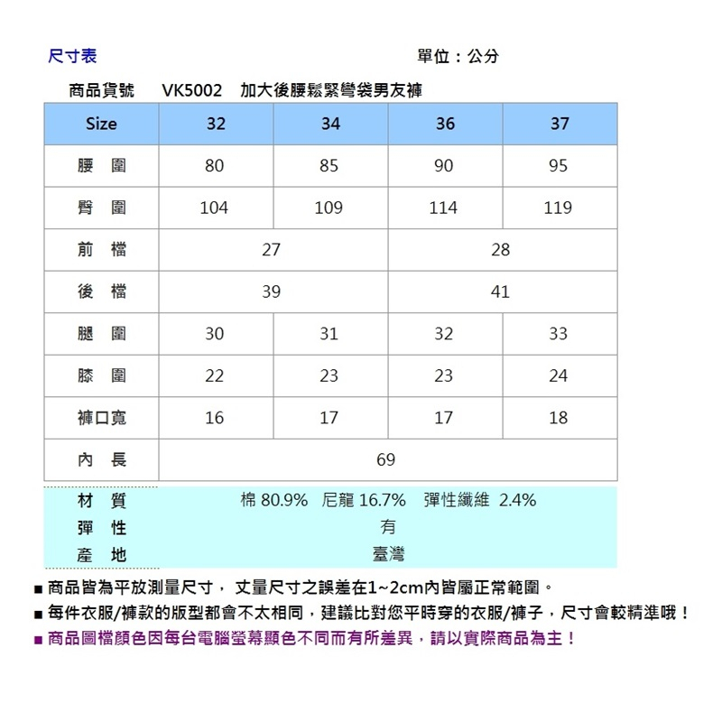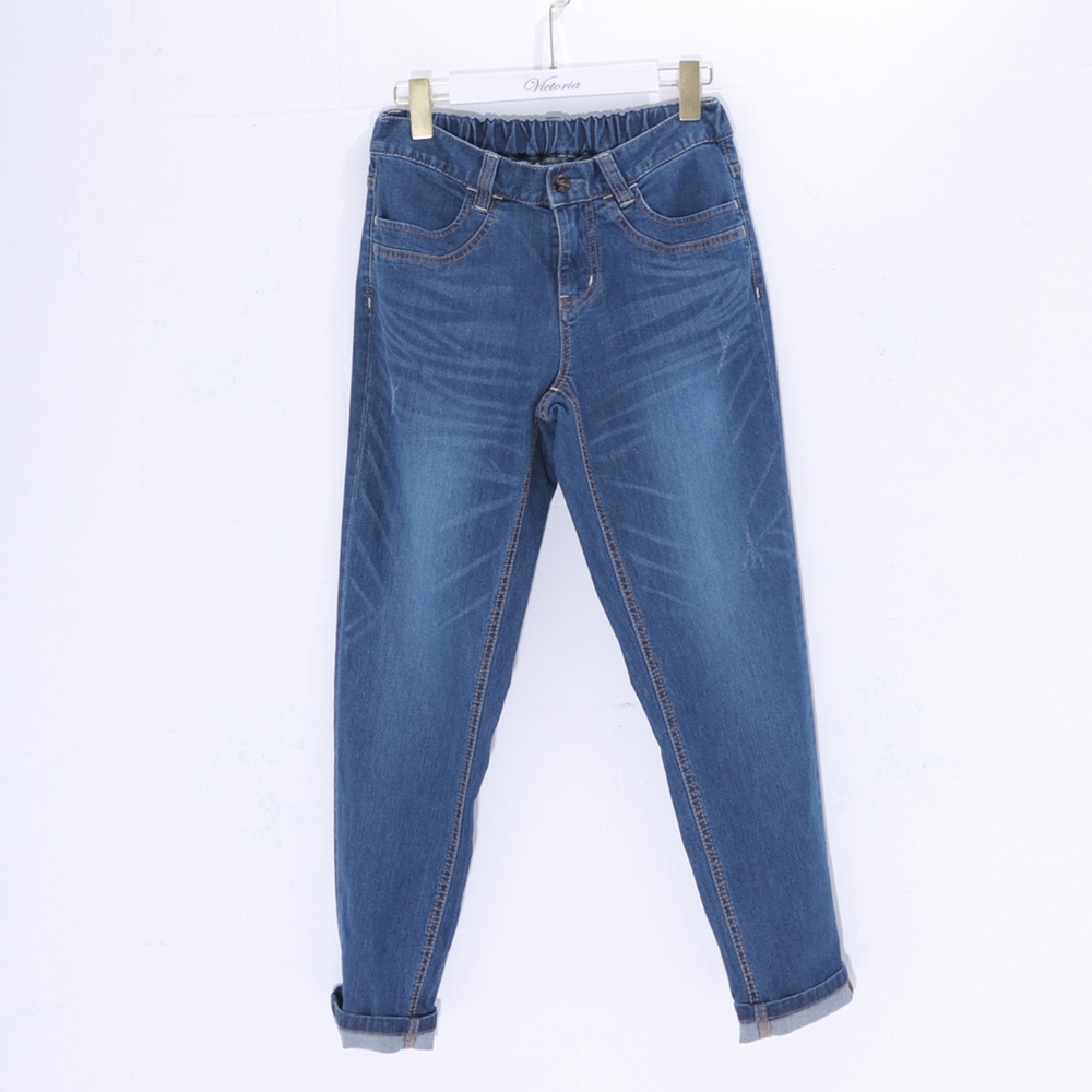 VICTORIA 加大後腰鬆緊彎袋男友褲 VK5002-76中藍,38|中藍,32|中藍,34|中藍,36BIG TRAIN 官方旗艦店