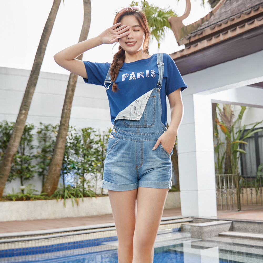 VICTORIA 天絲棉吊帶牛仔短褲 V55239-74中藍,S|中藍,M|中藍,L|中藍,XLOverallsBIG TRAIN 官方旗艦店