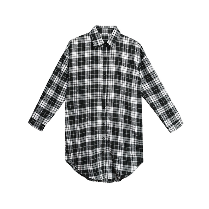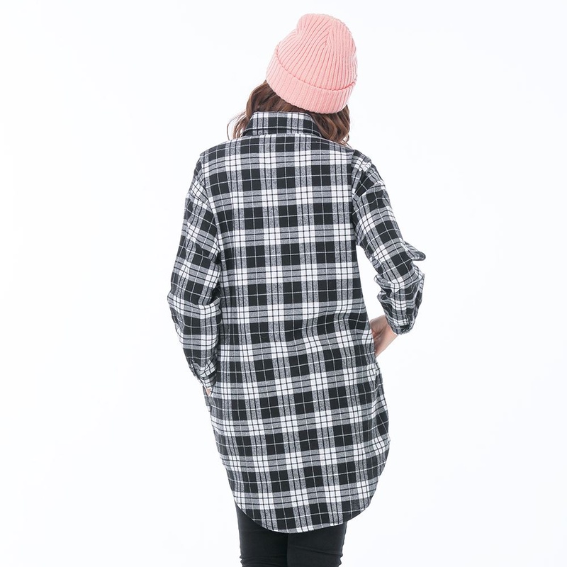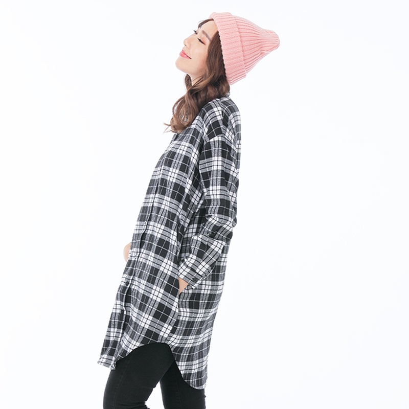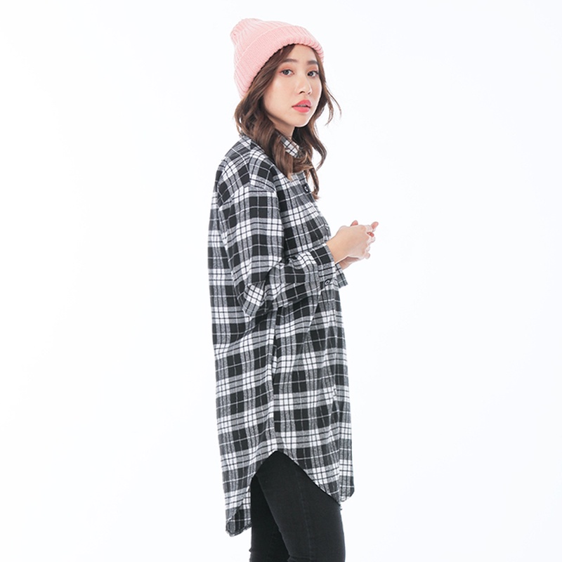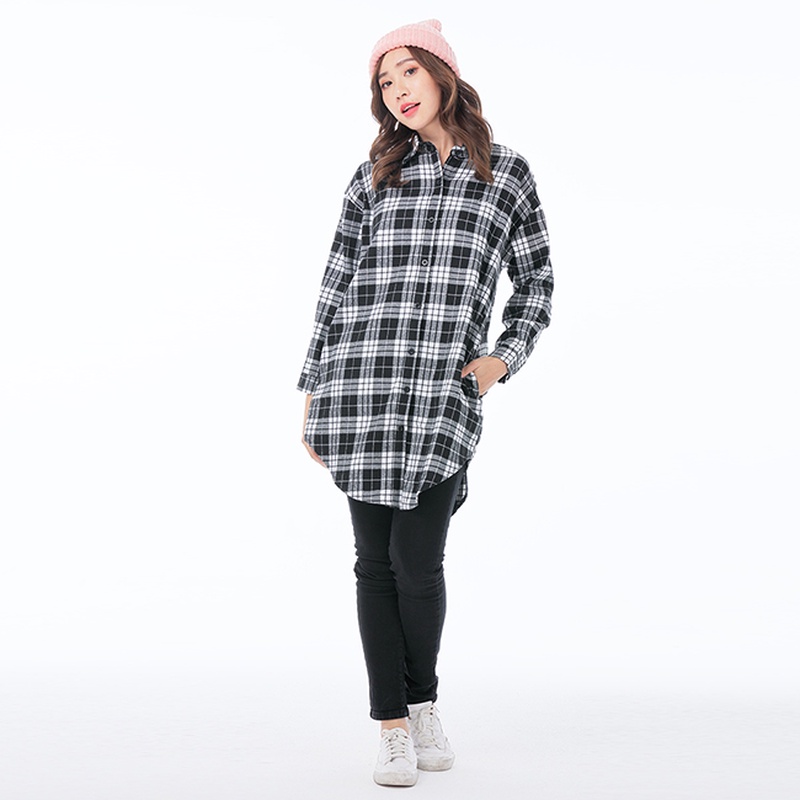 VICTORIA格紋長版襯衫-黑格-V15072-88黑格,FShirts & BlousesBIG TRAIN 官方旗艦店