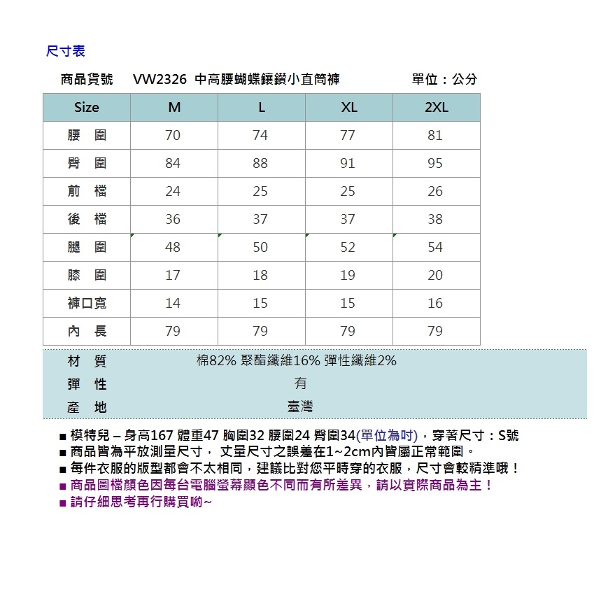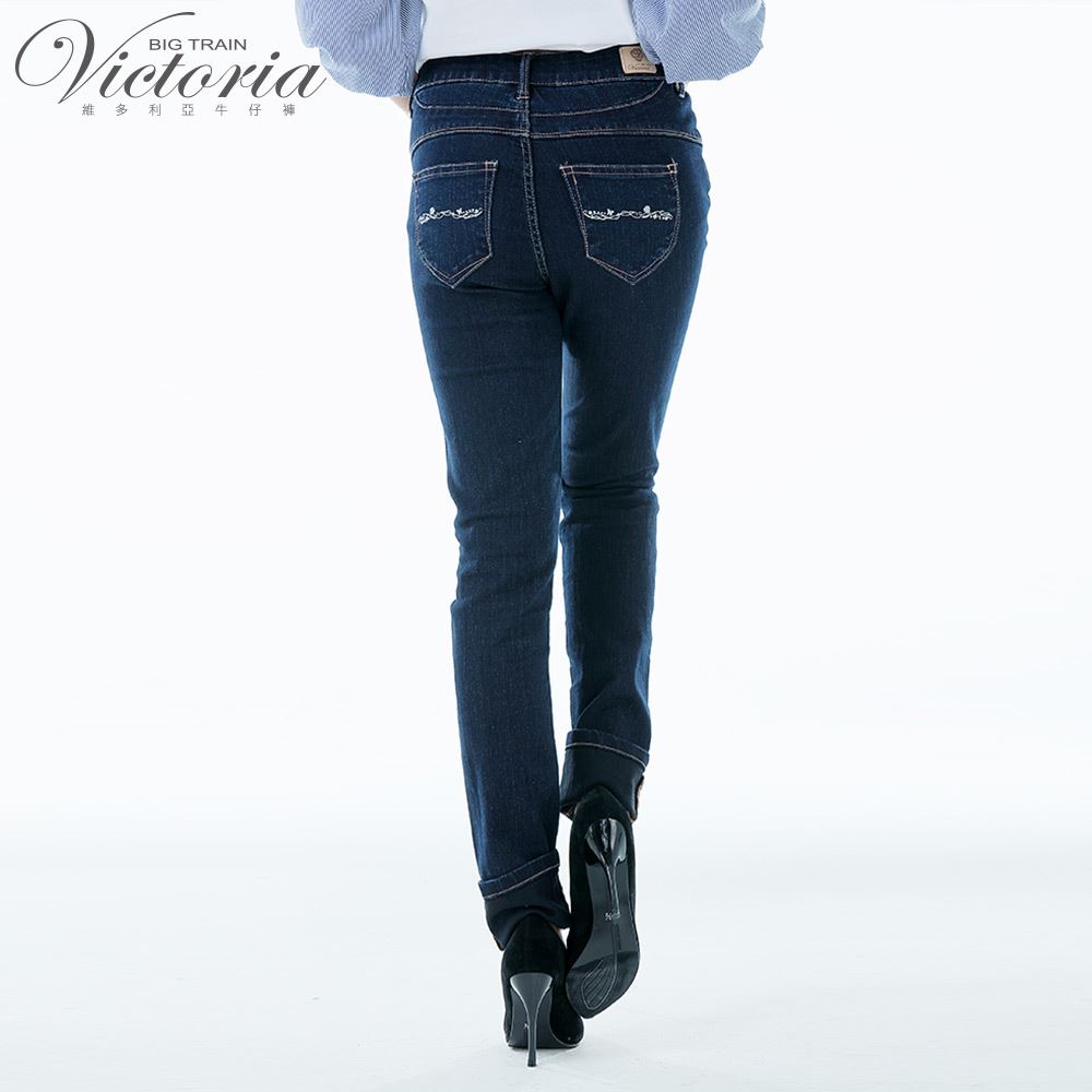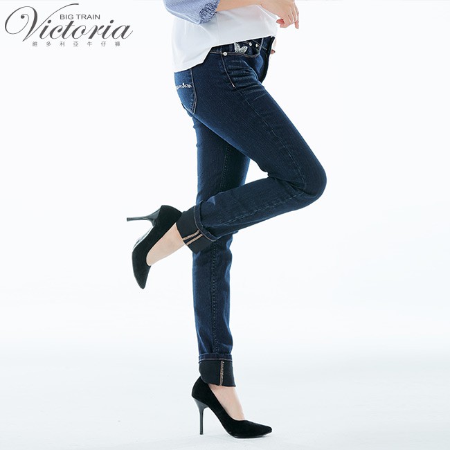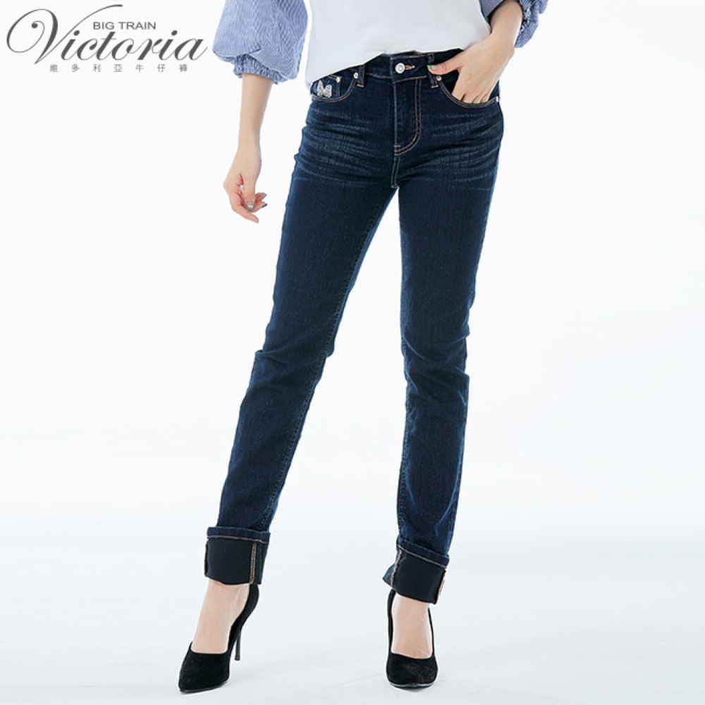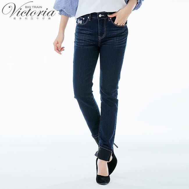 VICTORIA 中高腰蝴蝶鑲鑽小直筒褲-深藍VW2326M|L|XL|2LBIG TRAIN 官方旗艦店