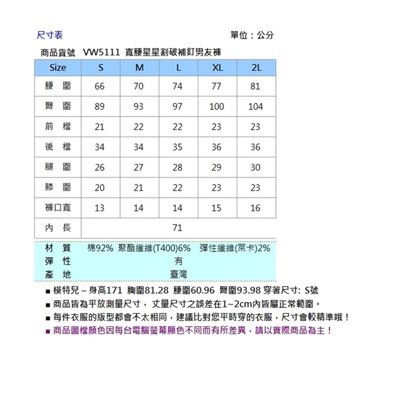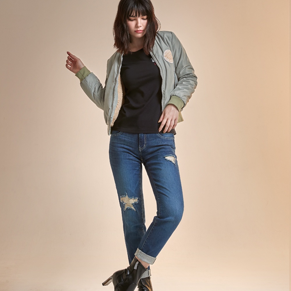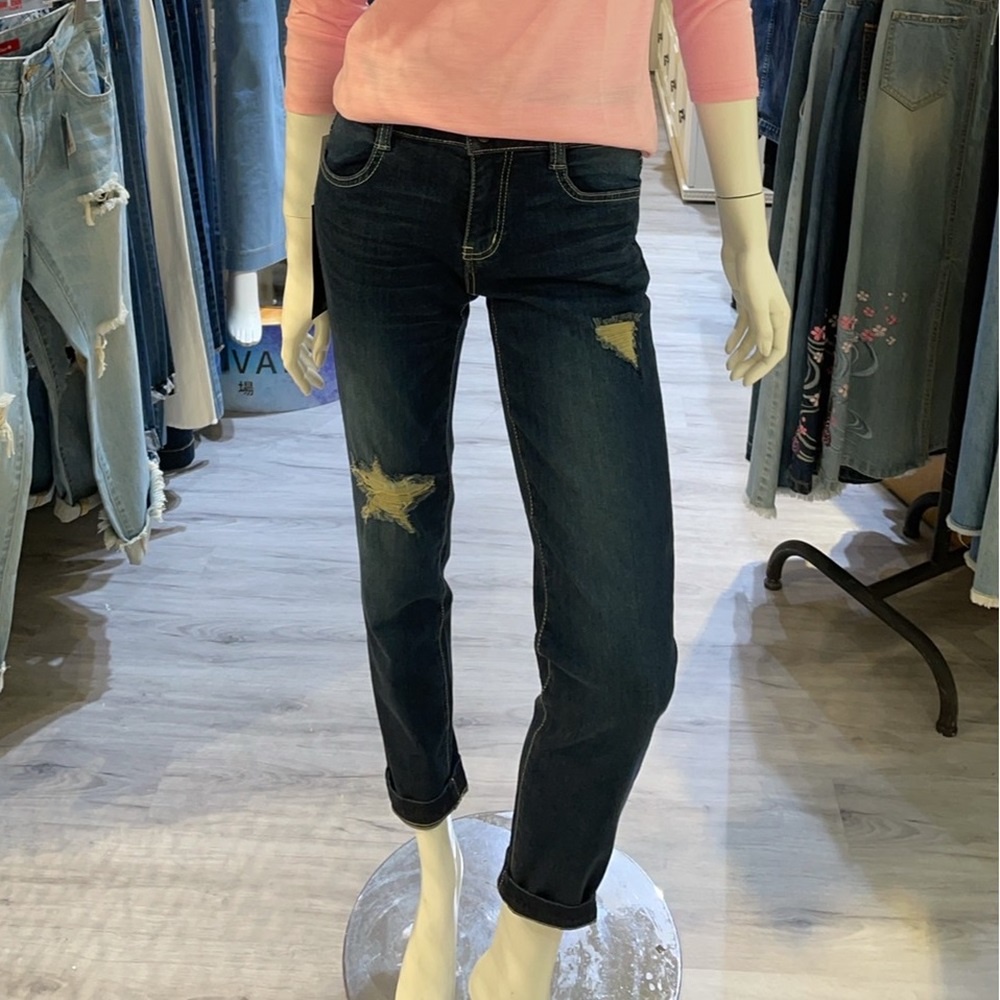 VICTORIA寬腰星星割破補釘男友褲-VW5111深藍,S|深藍,M|深藍,L|深藍,XL|深藍,2LBIG TRAIN 官方旗艦店