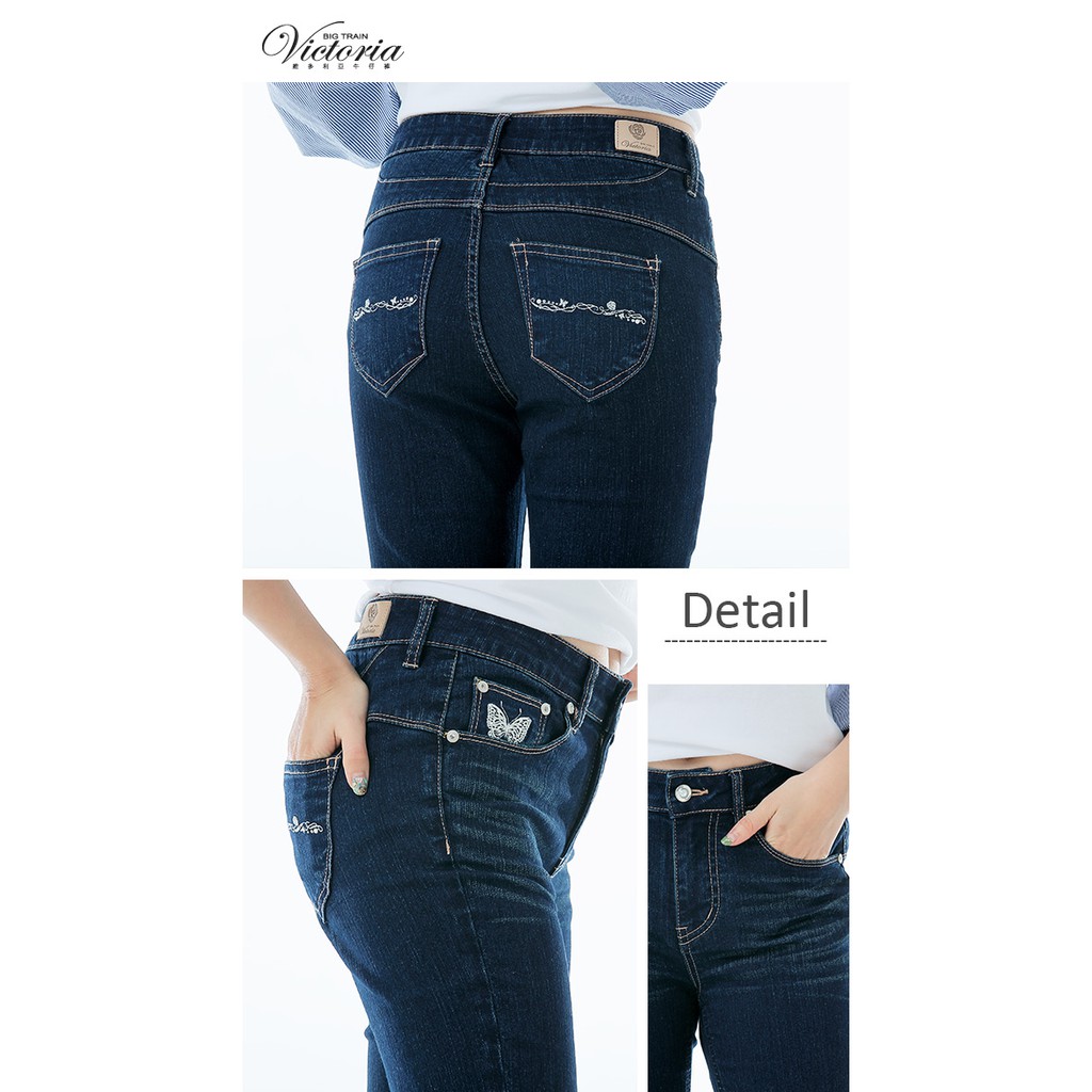 VICTORIA中腰印繡BF褲-深藍 -VW5073-78S|M|L|XLBIG TRAIN 官方旗艦店