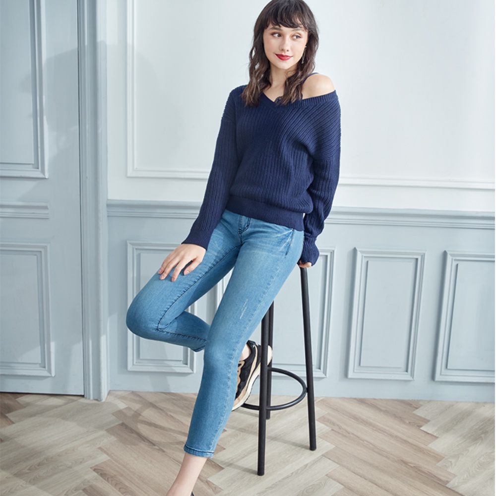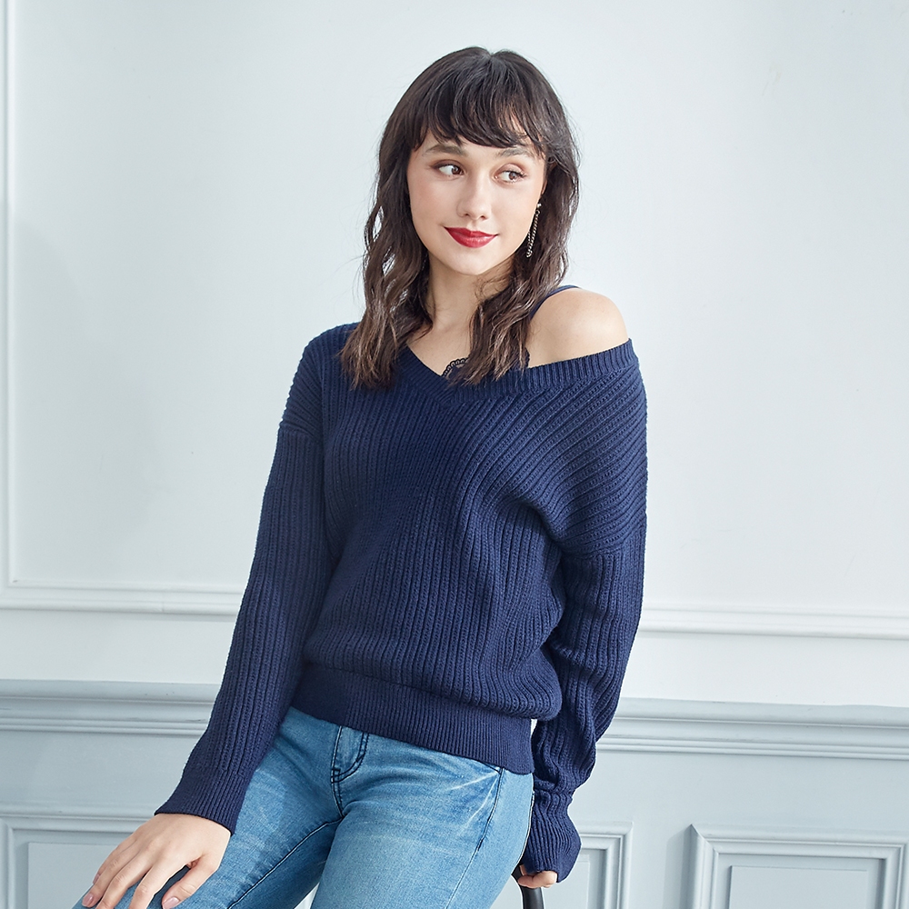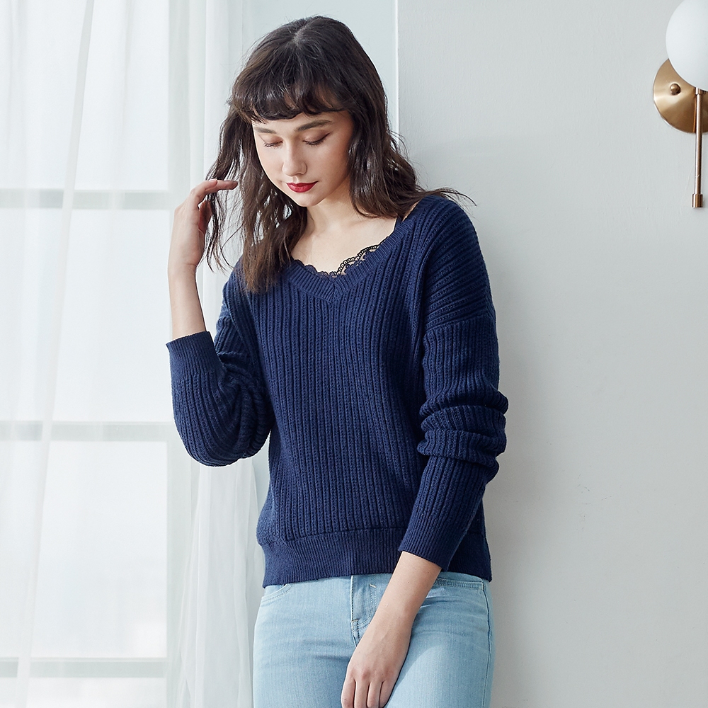 VICTORIA內拼接小可愛線衫-V65140-58深藍,FBIG TRAIN 官方旗艦店