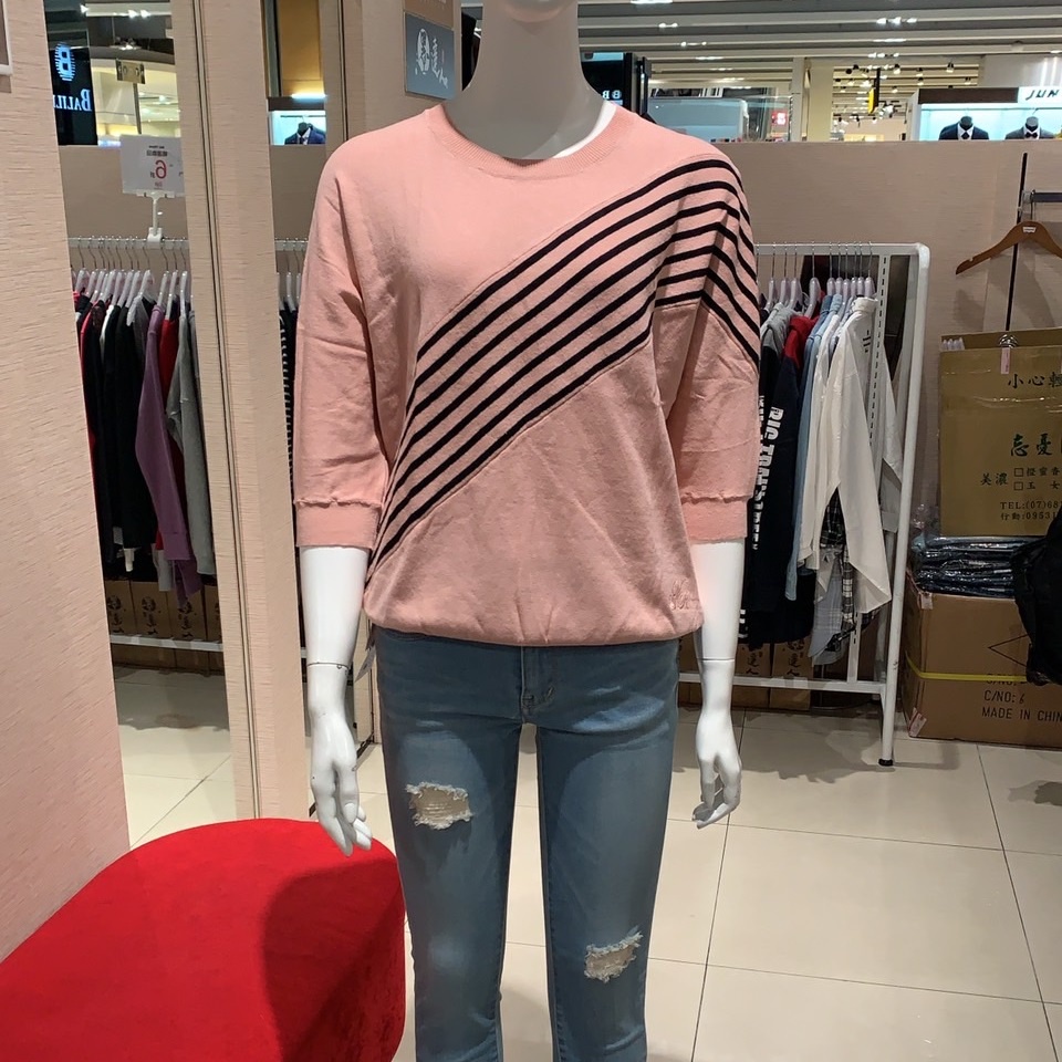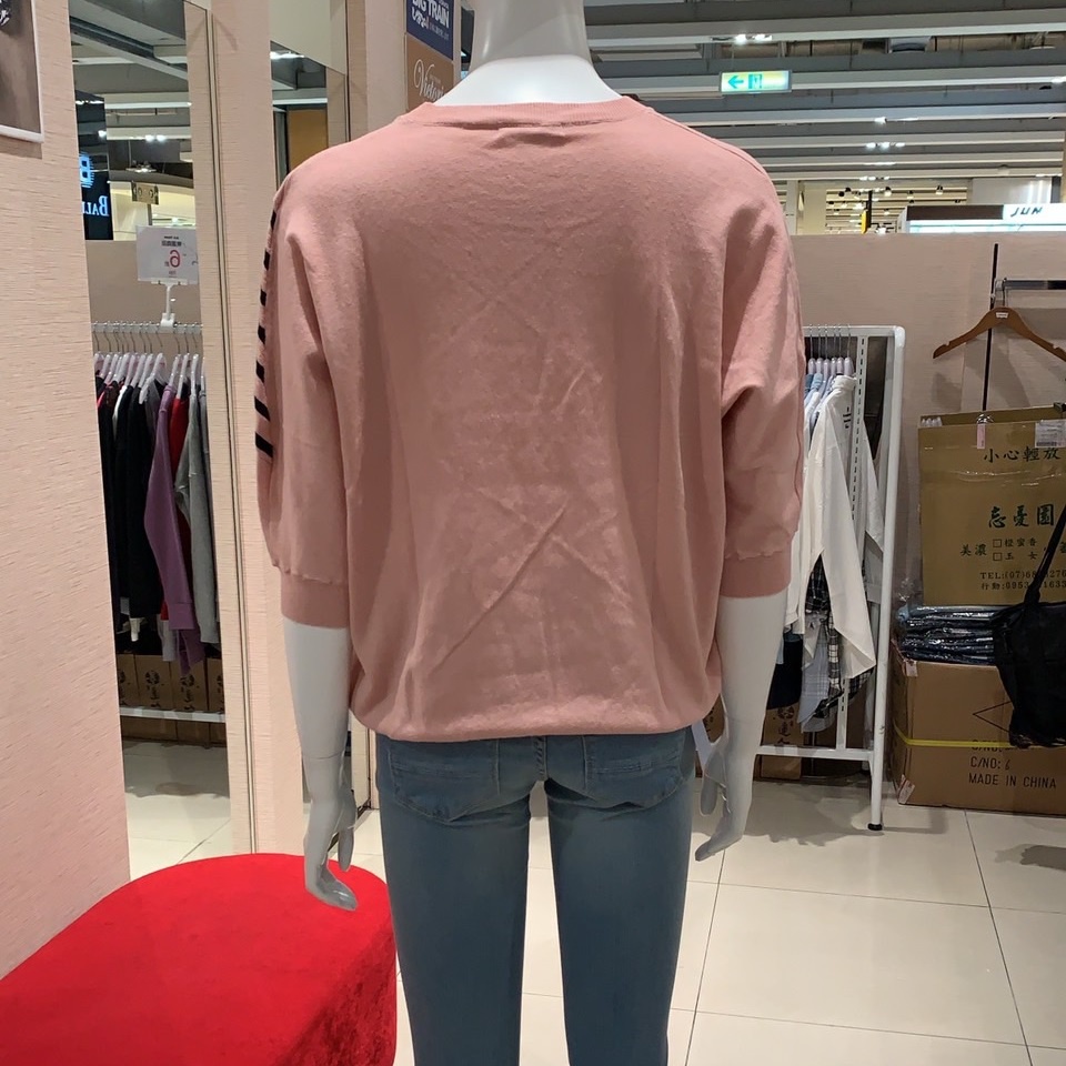 VICTORIA 不對稱條紋落肩短袖線衫 粉V65134S|MT-shirtsBIG TRAIN 官方旗艦店