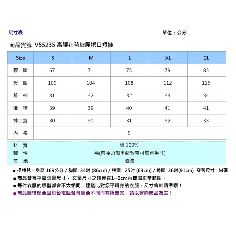 VICTORIA 高腰花苞縮腰捲口短褲 V55235-76S|M|L|XL|2LT-shirtsBIG TRAIN 官方旗艦店