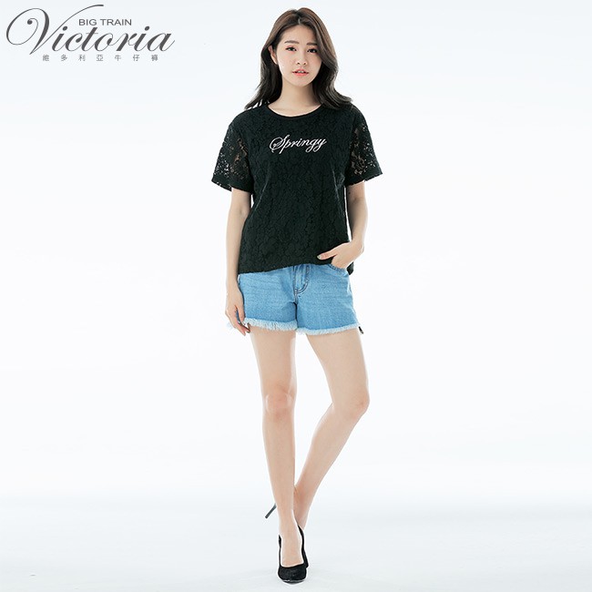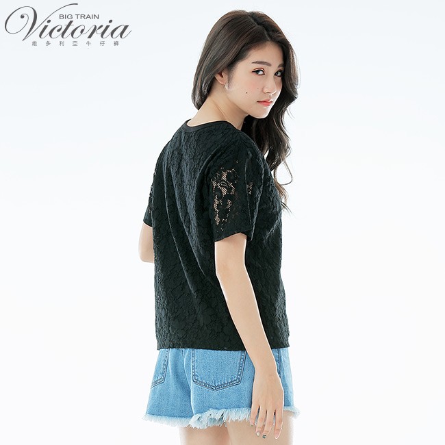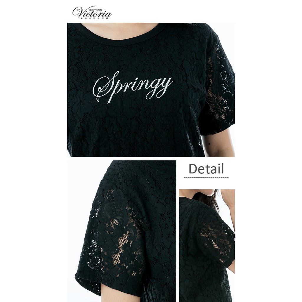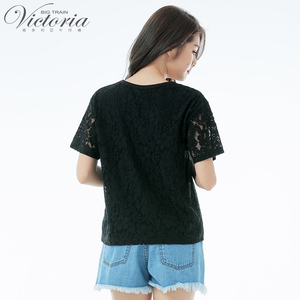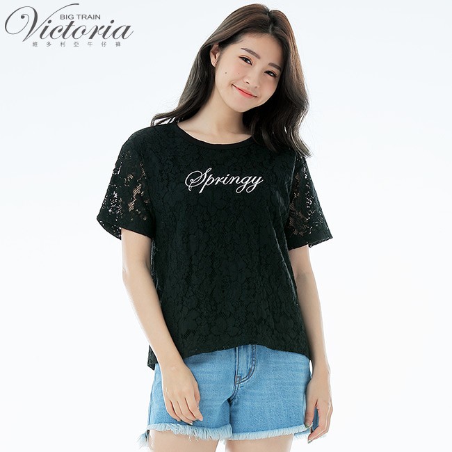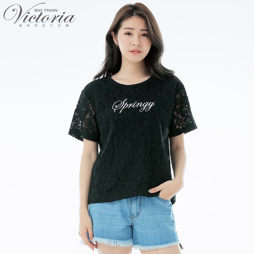 VICTORIA 文字繡全蕾絲短袖T-黑V85462-88S|MT-shirtsBIG TRAIN 官方旗艦店