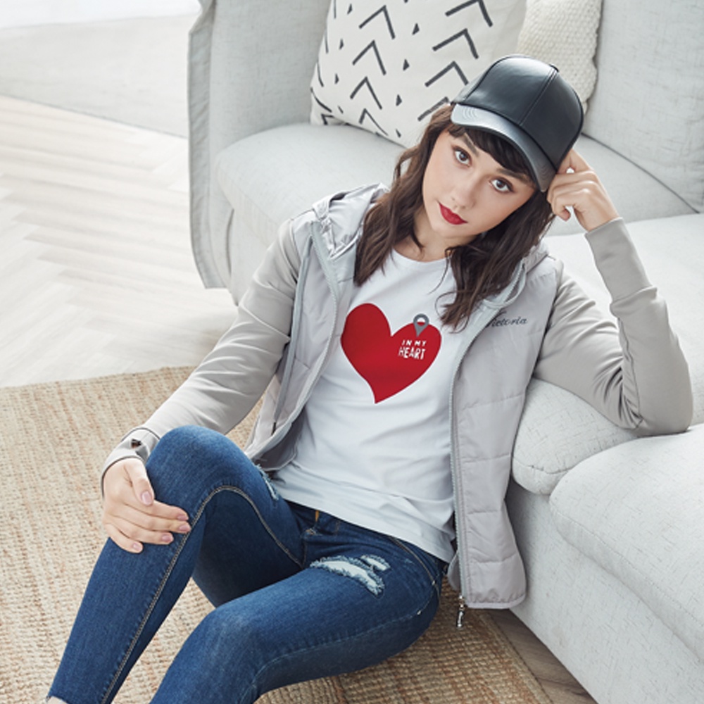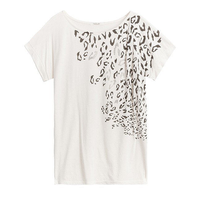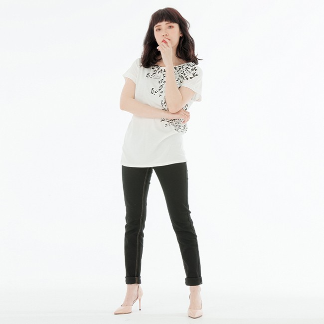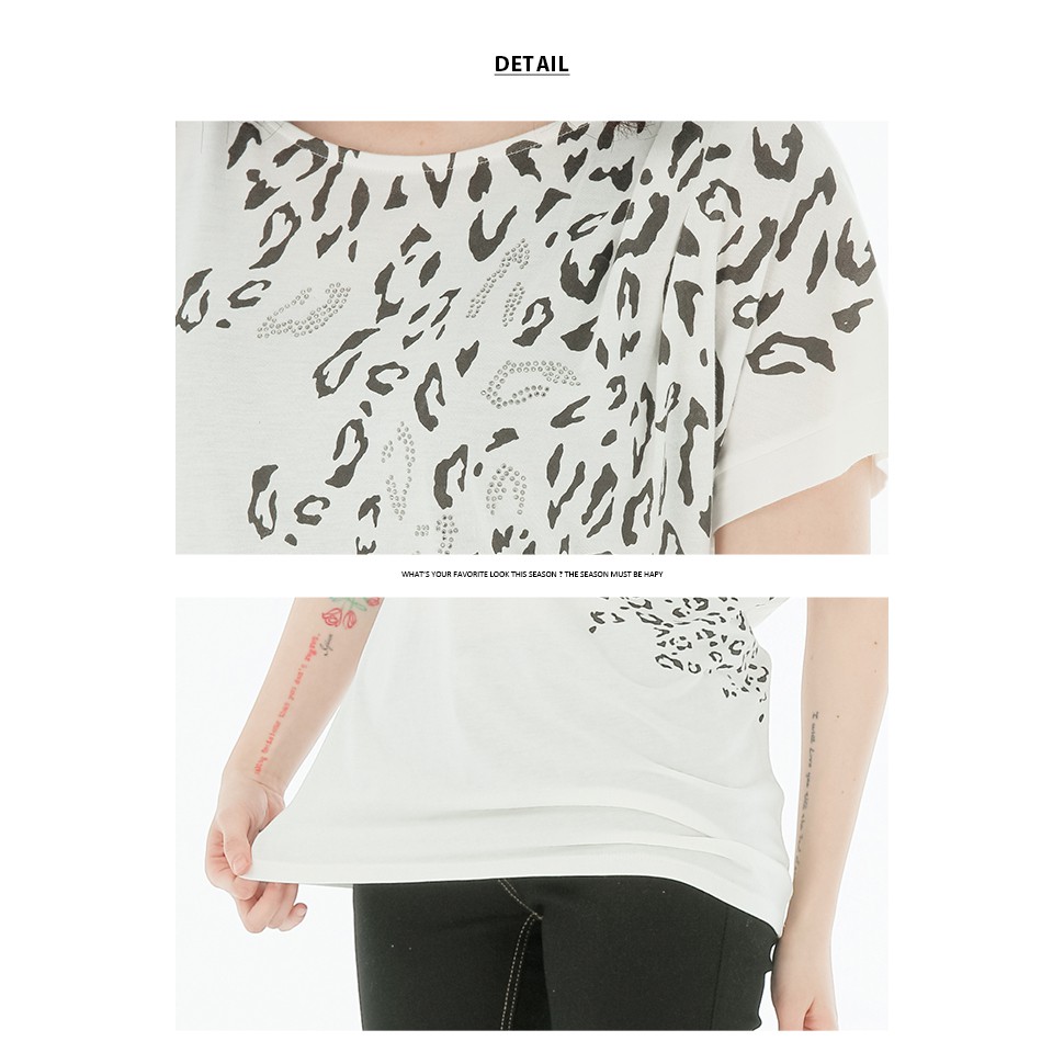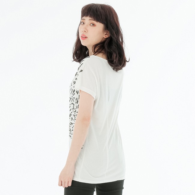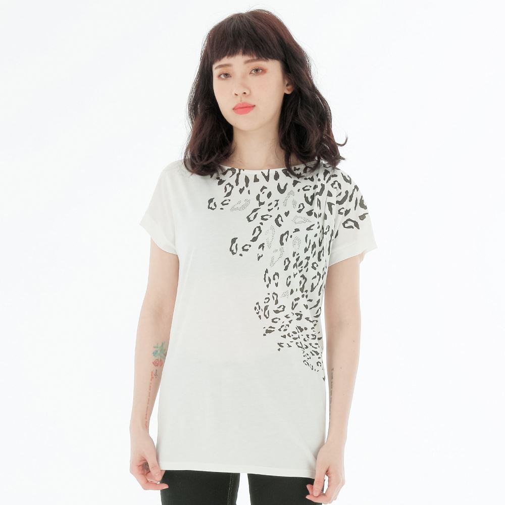 VICTORIA 不對稱落袖豹紋貼鑽女上衣-牙白S|MT-shirtsBIG TRAIN 官方旗艦店