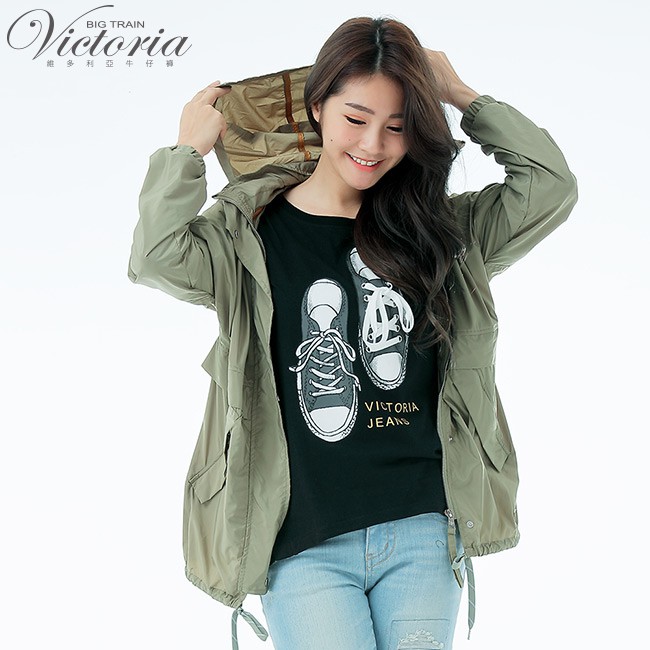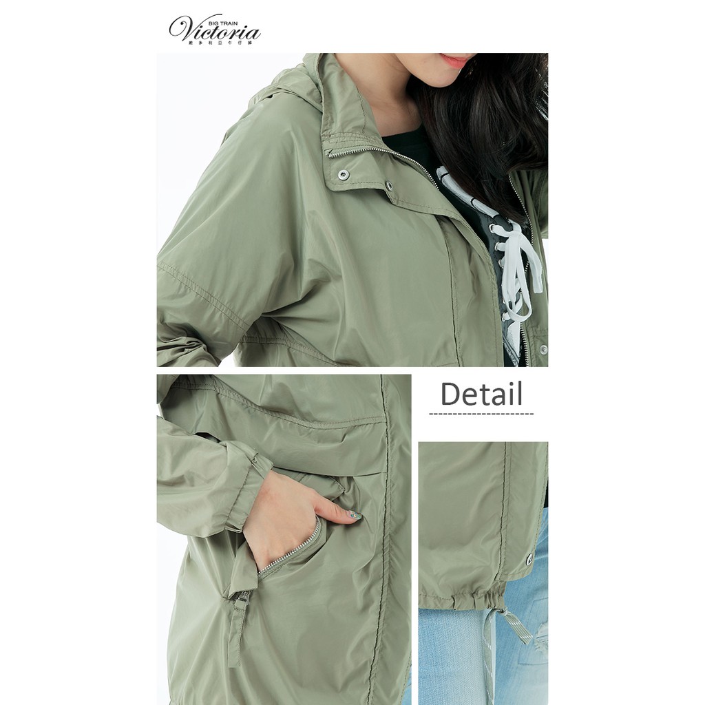 VICTORIA 隱藏帽抗UV休閒防風外套-草綠S|M|LJacketsBIG TRAIN 官方旗艦店